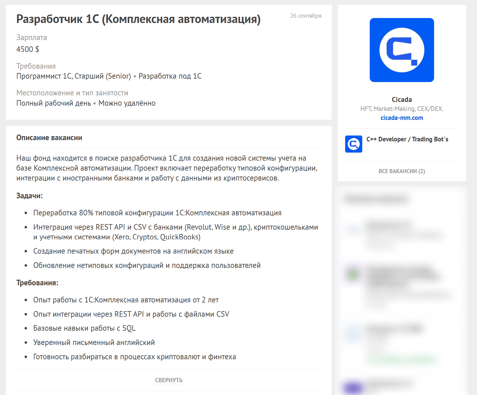 В кикаду полюбас залетел залетный бывший 1сник директором и решил 1с поставить туда ухахахаха, но при этом сам им заниматься не хочет и ищут дурачка за копейки