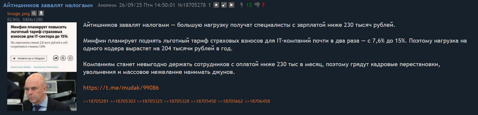 >>3550909 Смотря что считается айтишником) А то как айти льготы получать - хуй докажешь, что айтишник. Хуеву тьму бумажек и справок надо собрать, что ты контора полностью аккредитована, что верефицирована, что она во всех реестрах айтишных контор есть и тд. А щас наверное под айтишников будут всех грести, чтоб налох собирать побольше