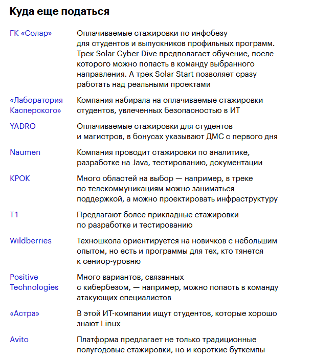 Я учился с 2017-2023 год. В 2019 пошел шерстью работать в контору по производству ТСЗИ (глушилки и прочее говно), потом годик поработал техподом 1 линии. Потом еще год пытался пробиться на стажировки, тоже бесполезно. Особенно убило когда я подавался в Netcrackers, мне пришел отказ, а через год я узнал что меня оказывается взяли но из-за того что мне не пришло письмо мне отправили отказ. А все эти CTF-ки полное гавно для задротов.