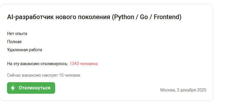 Я вот за чтение 4-х тредов только к выводу пришел, что кризис не из-за ИИ, а в целом из-за около-рецессии экономики. И после ковида вакух стало меньше, а соискателей не стало. Верно я резюмирую?