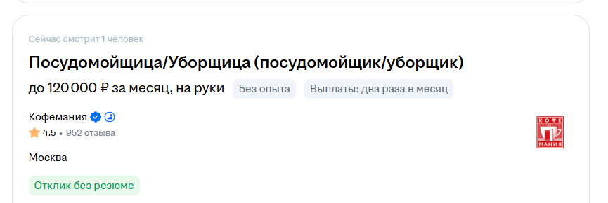 >до 120 000 Всегда смешат эти провокационные картиночки от людей, которые в подобном днище никогда не работали. Открою секрет - половина этой суммы просто нарисована чтобы как можно быстрее найти самых тупых и жадных, другая половина - оклад+премия, где оклад занимает сильно меньше 50%, а план, за который ты получаешь премию, если у кабана хорошее настроение, физически невозможно стабильно выполнять каждый месяц. Итого в среднем будешь получать от 30 до 50 тыщ рублей, в зависимости от жадности и бедности кабана. >Москва Может в Москве по-другому, конечно, но слабо верится.