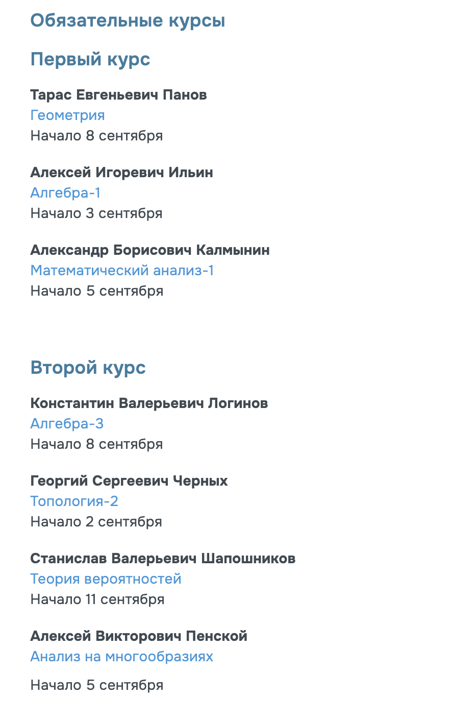 >>3595041 >Там всего два года обучения, это раз. Нет. Там первые два года есть обязательные курсы просто. На 3 берешь спецкурсы, но тоже есть список обязательных, не закрыв которые диплом тебе не дадут. На 4 пишешь дипломную работу. Раньше сдав обязательные курсы то ли за 1 курс то ли за 2 ты становился студентом нму и получал стипендию. Дают ли её сейчас не знаю. Первые два курса там довольно простые и приземленные. Анализ на прямой, линейка, основы алгебры. Потом топология, многомерный анализ, основы галуа. Второй курс многообразия, комплексный анализ, коммутативная алгебра. >Как раз таки перекатиться после НМУ в западный вуз и стать там преподом крайне сложно. Преподом после нму конечно невозможно. Аспирантом вполне.