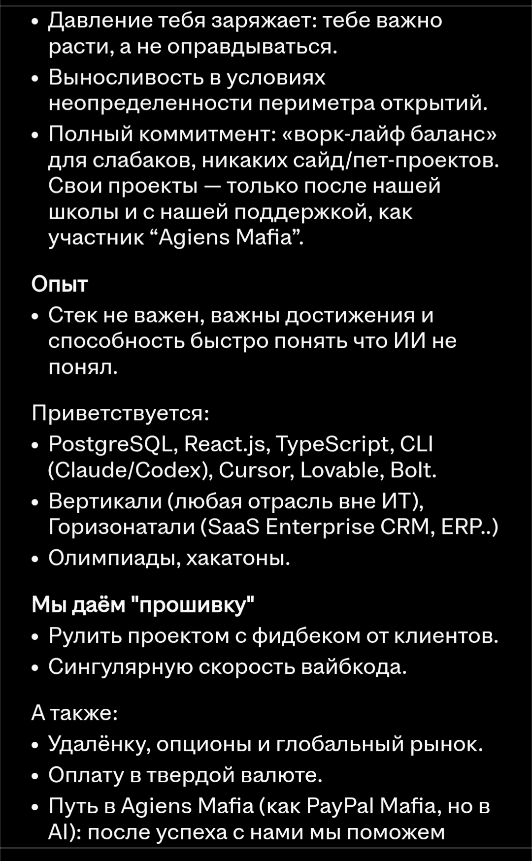 >>3630115 Бля я не верю, это какой-то рофло сайт или кабанчик в маниакальной фазе навайбкодил в lovable такую хуйню, не верю что кто-то там работает реально https://join.cloved.ai/culture