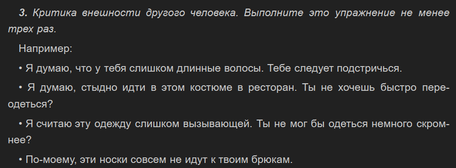 Вот , например , вы говорите Нарциссу: "Вынеси, пожалуйста , мусор!" И, поскольку, Нарцисс чувствует себя перманентно униженным , из за того что его постоянно обесценивали, отвергали и критиковали в детстве, тем самым сформировав у него неверное представление о своей ценности, то он услышит это как: "Эй, холоп, метнись до мусорки и обратно)"