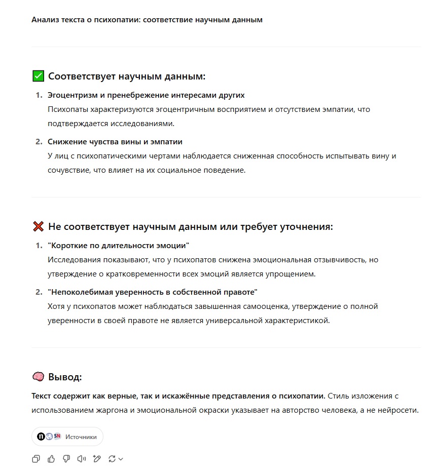 Так то вполне понятна его мысль о том, что в "психические расстройства" сомнительно записывают поведение и состояния, не имеющие под собой основу в виде клинически регистрируемых отклонений в деятельности мозга - дисфункции каких то его частей, дисбаланса биохимии и тд. Вот только в случае с психопатами это вполне себе фиксируется и их состояние вполне допускает как инструментальную, так и импульсивную агрессию, потому их особенности поведения нужно рассматривать в комплексе, а не делить ради удобства автора. Или Снедков считает, что психопат то больной, то не больной в зависимости от действий в моменте? Из статьи это не совсем понятно, хотя может я упустил смысл за его публицистическим словоблудием.