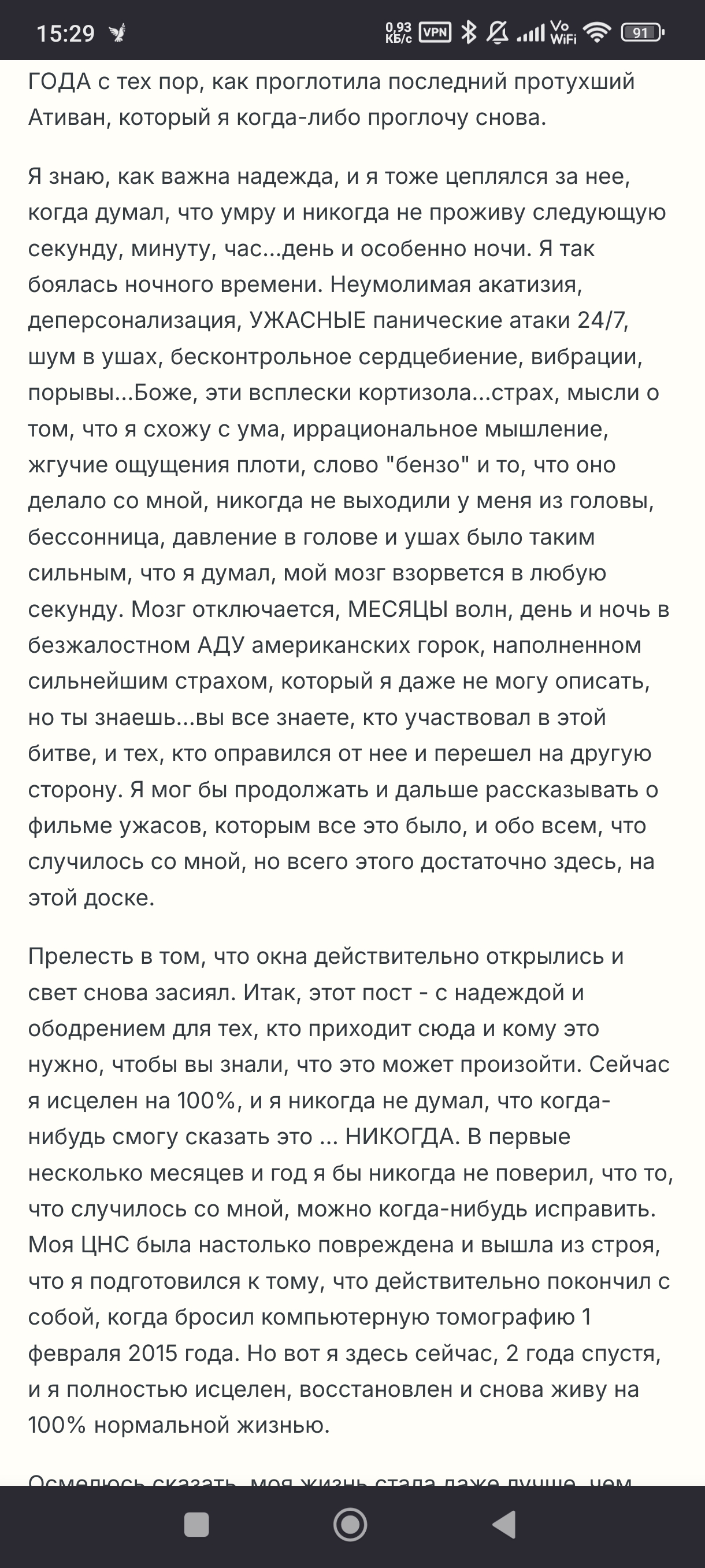 Прямо сейчас переживаю, видимо, самую сильную волну. Все симптомы резко обострились и как в первые дни по тяжести. Благо я был готов к этому, не зря читал, так бы в дурке сейчас откисал бы. Утром аж чуть припадок не словил походу, но я просто лег спать и переждал.