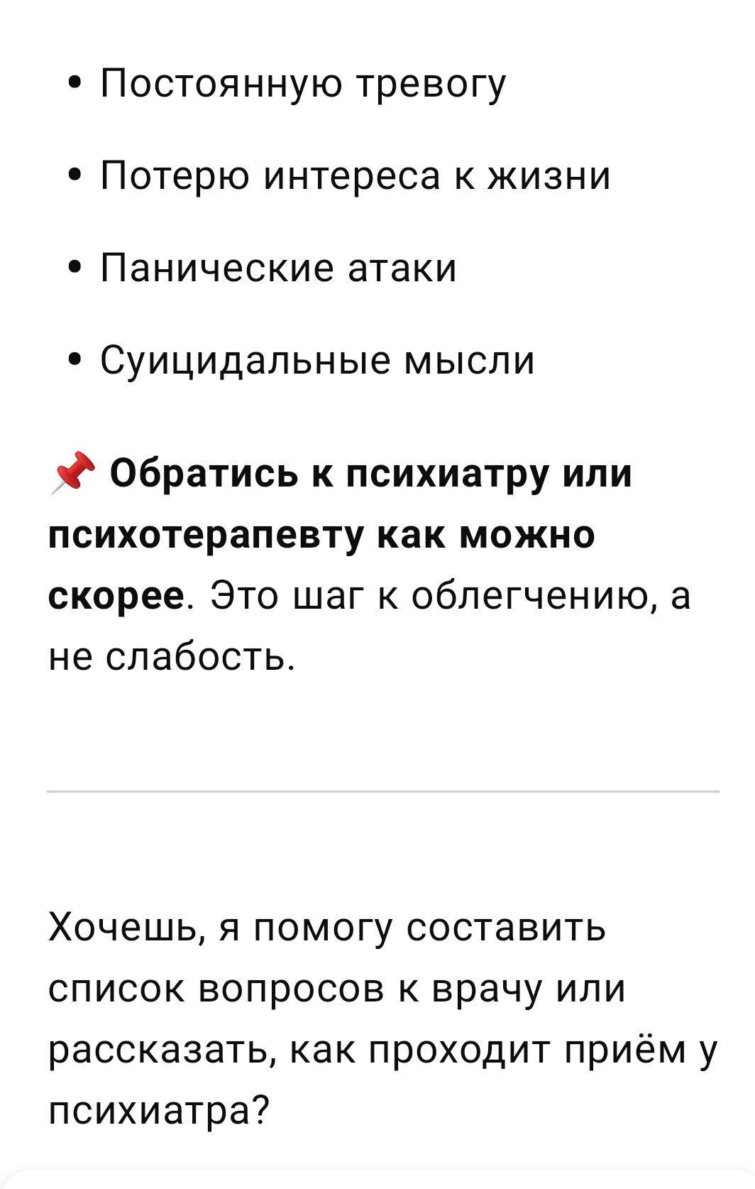 >>1849795 Они все по методичкам работают, ничего нового и уникального не выпишут. И сама психиатрия и психфарма в целом скудная по наполнению. Нихуя ничего годного нет здесь. Может на западе что-то есть, что может помочь. А в снг нихуя нет.