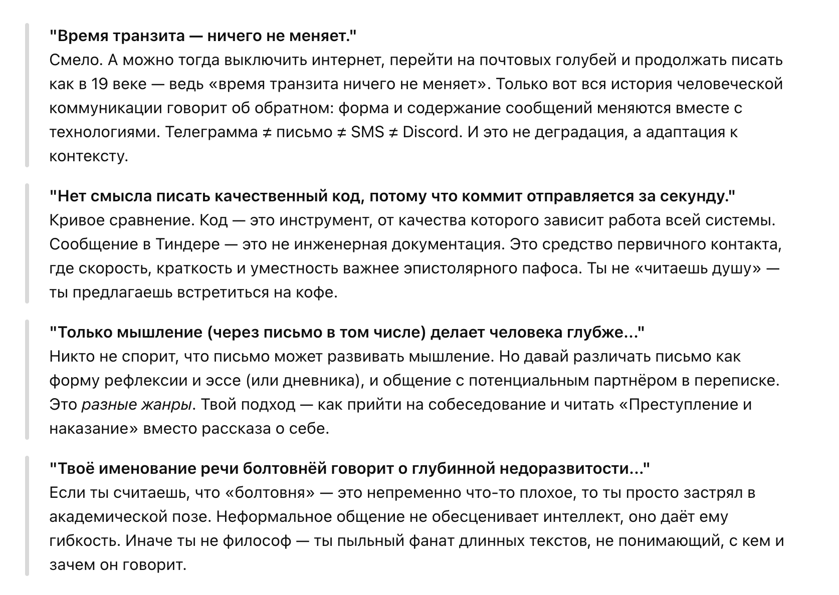 Моя атака была именно про то, что это ценности, которые ценятся в деревне и в семьях алкашей и детдомовцев, у меня в роду таких "пробивных" не жалуют