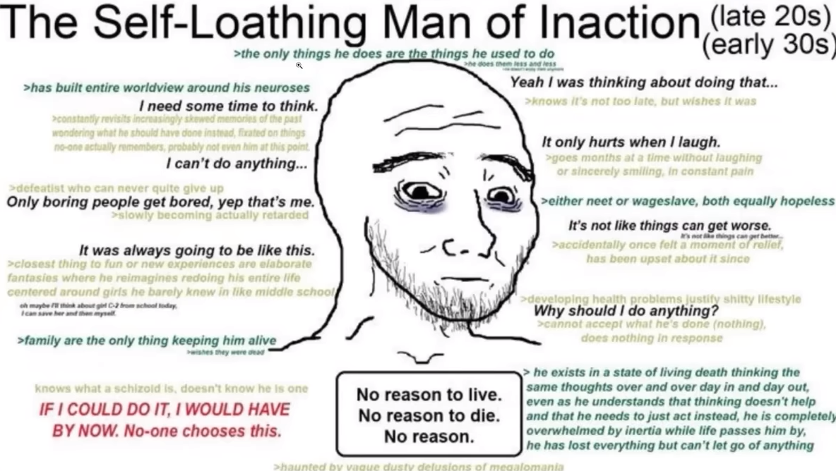 >>1857105 >ШИЗОАФФЕКТИВНОЕ РАССТРОЙСТВО БИПОЛЯРНОГО ТИПА ТИПО ЭТО САМЫЙ ЖЁСТКИЙ ДИАГНОЗ ИЗ ВСЕХ ВОЗМОЖНЫХ простая шиза хуже, при шизоаффективном нет негативки а позитивка легко купируется таблетками. шизоаффективные могут добиться большего чем шизы. >НО ВООБЩЕ Я ЛИЧНО СЕБЯ БОЛЬНЫМ НИКАК НЕ СЧИТАЮ ну кста сейм тоже считаю что мне диагноз поставили по ошибке
