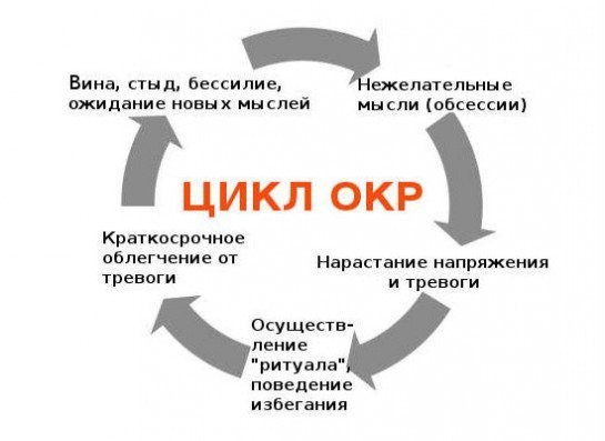 А теперь по-человечески : 1.Повторяющиеся мысли, которые заставляют Вас испытывать тревогу – «навязчивости» или «обсессии». Это могут быть неприятные слова или фразы, мысленные картинки или сомнения. 2.Действия, которые Вы совершаете снова и снова, которые помогают Вам чувствовать себя менее тревожно - «компульсии». Вы можете стараться исправить или «нейтрализовать» мысли, раз за разом считая, говоря специальное слово или совершая определенные ритуалы.