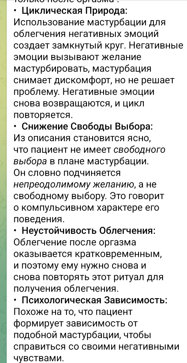>Сам себя уверяю о том, что если это зайдёт далеко то я смогу это прекратить, но сейчас продолжаю это делать. Наоборот, начнется самое интересное, когда ты будешь пытаться это прекратить. А еще твой привычный обычный ритуал может в какой-то момент перестать работать.