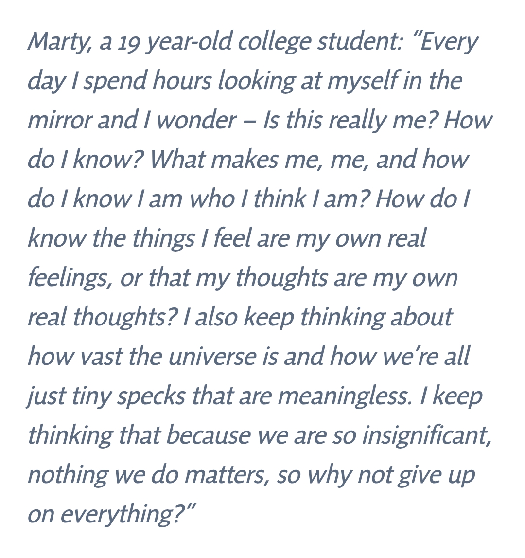 >>1747377 И расскажи ка про дереализацию. У меня так же. Вооюде никогда не думал, что меня жто коснется, представлял дереализацию как что-то шизофреническое и с галлюцинациями, хотя может таа и есть, но это наверное последнии стадии, что ли. Потом, почитав людей, их описания своих ситуаций, увидел там себя. И мое ощущение слепоты и такой как бы дымки, тумана, оказывается не из-за хуевого зрения, и я потом понял, что нет. Не могу получать удовольствие, например, с посещения леса, как раньше. Я словно в какой-то слепой дымке. Это если очень коротко.