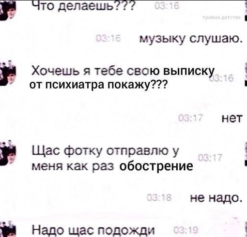 С чего бы мой уйти в отрицание? Я же более 10 постом написал, что сломали психику, били в школе, тот в треде стал убеждать якобы это врождённое и никак не повлияло происходщее в школе. Где ушёл в отрицание? Когда же с ним согласился, сказал: "да, это склад характера", тот начал говорить про уход в отрицание.
