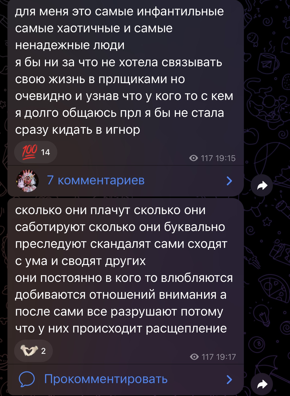 а самое мерзкое — в глубине сознания червячком гаденькая мысль «вот бы государство мне выплачивало пенсию из-за диагноза», «вот бы лекарства были бесплатными», «вот бы люди относились ко мне помягче из-за прл». никто не собирается меня жалеть и относиться ко мне хорошо по дефолту, я это знаю. просто… так хочется, чтобы окружающий мир помог. но он никогда мне не поможет.