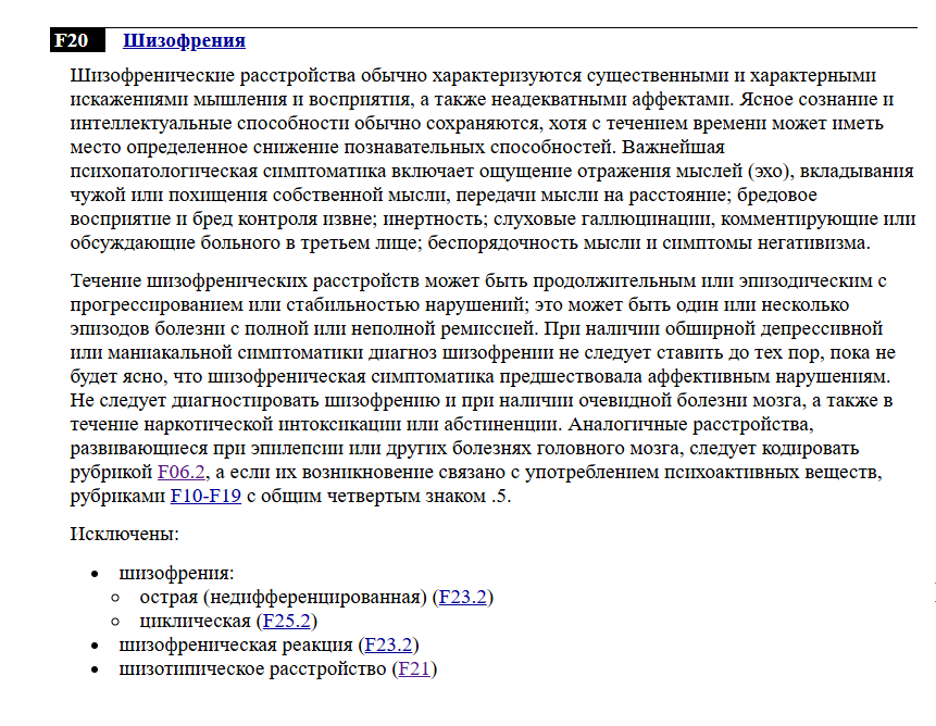 >>1795309 > В моём диагнозе нету ГАЛЛЮЦИНАЦИЙ ГОЛОСОВ И ПСИХОЗОВ, это просто типа не выхожу из дома и с людьми не общаюсь..