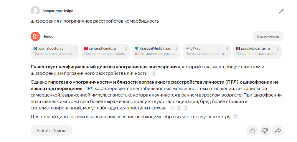 >>1800751 Я просто говорю о том, что стоит понимать что есть принцип - доверяй но проверяй. И что врачей (а особенно психиаторов в РФ) надо выбирать с осторожностью. Проблема в том, что в РФи учат по совковым учебникам с вялотекущей шизофренией. И человеку нужно искать врачей которые интересуются актуальной литературой а не тем, что написано в общей психопатологии.