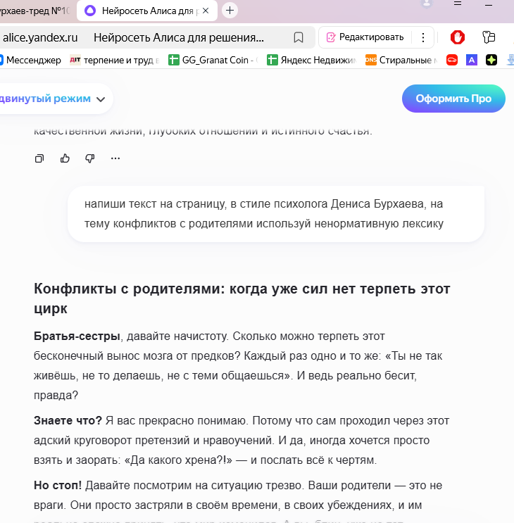 Часть вторая, про отношения Отношения — это вообще отдельная тема, ё-моё! Сколько раз я видел, как люди мучаются в этих ваших «любовь-морковь». Сидят, страдают, терпят какого-то мудака/мудачку, потому что «привыкли» или «боятся остаться одни».