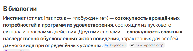 Это примитивное научпоперское упрощение. У инстинкта три составляющих: 1) врождённая потребность 2) врождённый механизм побуждения к удовлетворению потребности 3) врождённый способ удовлетворения потребности. У человека отсутствует только третья ступень, то есть способу удовлетворения потребности приходится учиться. Если двух составляющих недостаточно для именования психического процесса инстинктом, то инстинктов нет и у обезьян и других относительно высокоорганизованных животных. Публичные высказывания учёных в этом плане не слишком интересны: они все находятся в рамках левой социал-конструктивистской идеологии. Попробуешь сказать что-то в пику - прощай гранты.