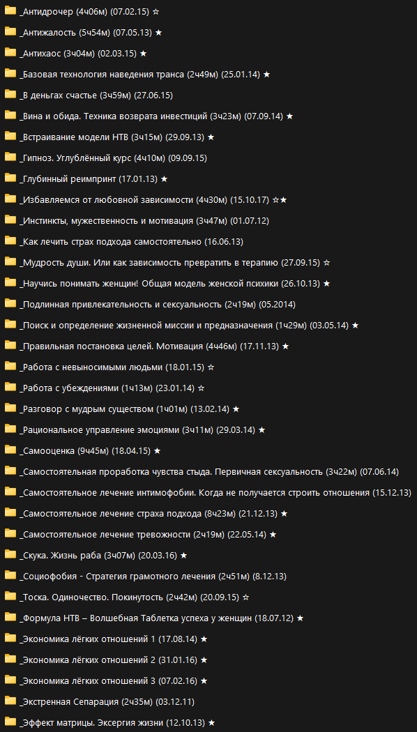 Пик - те вебики, что я прослушал в своё время. Закрашенная звезда - значит зашло, пустая - нет. Но это всё индивидуально, у каждого свои проблемы.