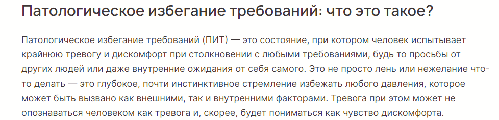 Опять же, некоторая ответсвенность(ходить расспрашивать паспотрный стол, чтоб тебе выдали нужные документы) может быть просто не под силу аутисту, когда для обычных людей это обычное дело, сходить, вломится в кабинет и поспрашивать. Конечно с таким все таки можно справится, потратя всю энергию. Но только отвественность взрослого человека этим не ограничивается и таких действий, которые для аутиста пиздец эннергозатратны, тьма тмущая. Понятное дело, что хочется изолироваться от этого, особенно когда никто тебя не поймет и не поддержит. А на твои слаюбости только отреагируют раздражением. Невозможно всегда терпеть. Срывы бывают даже у самых нормисных нормисов. Я бы даже сказал, что нормисы вообще довольно нетерпеливы, когда дело доходит до дискомфорта. Они с ним гораздо реже сталкиваются, так как их зона комофрта гораздо более расширенная в сравнении с зонами РАС.
