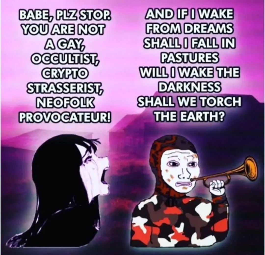 >>1883174 Короче, тебе нужно понять что сейчас 90% людей (и 99.9% пролов которые готовы с тобой вступить в контакт) просто зомбированы и от "человека" там только функциональная оболочка. Не следует в таких что-то искать, спорить, убеждать... (Или делать это но с предельным контролем и ясностью, без чувств, с пониманием целей и готовностью в люьоц момент откланяться)