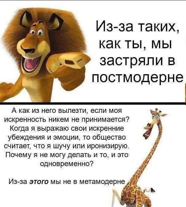 >>1884465 > Стал мерзким после ковида, это ты правильно сказал. На витаминах прийду в себя. Возможно, ты имел в виду именно его напор и упёртость и неуместность, когда он заходит в чат по jpop и начинает тираду про половцев и печенегов, но я увидел в этом атаку на диалог и установление коммуникации. Двум людям никогда не понять друг друга