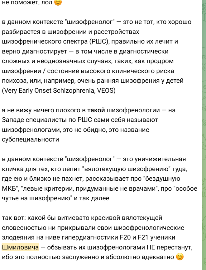 ахуенная критика бро, правда у него нет монополии нахуй на частную психиатрию лул. чекай Елесеенко того же, меднауку и психиатр онлайн, а не занимайся блять поиском говна