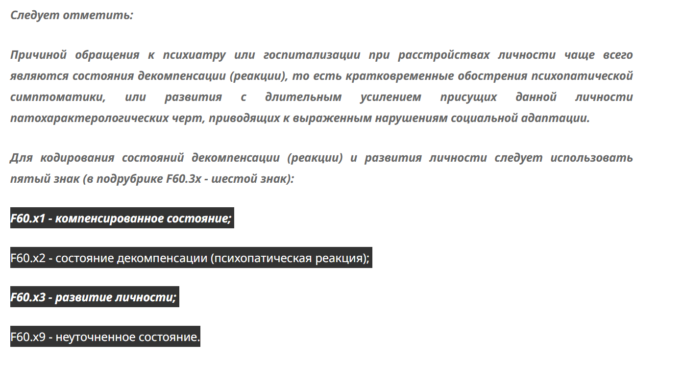 Блядь. Это буквально КОД из методички. Может ли такое быть? Нет блядь! Но в советской системе... точнее кадавре основанной на сочтеании Гавнушкина и МКБ-10 оно так и бывает. Если надо могу тебе свой сертификат кленического психа кинуть. (Психолога тоже)
