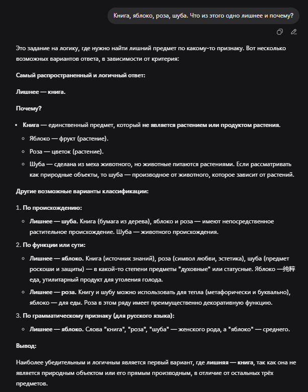 Но справедливости ради умные шизы щелкают эти тесты как орешки потому что знают правило "первый ответ - самый ебанутый". По факту часто это тестирование превращается в попытку угадать то, что ожидают от человека. "Если я скажу что лодка лишняя потому что у неё нет колёс - психолог подумает что я даун. Так что я кажу что лодка это водный транспорт а весь остальной - наземный"