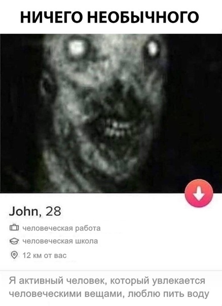 Одно время на двоще форсили мемасик, вроде "братишка" его называли - там некое страшное существо пыталось втереться в доверие и говорило типа "я такой же как ты, люблю делать всякие человеческие вещи, например пить воду". Он запал мне в душу. Кажется, что я похож на эту тварь, когда пытаюсь общаться с нормисами. Как будто что у меня нет ничего общего с этими человеческими существами и неочем говорить. Люблю пить воду, хуле.