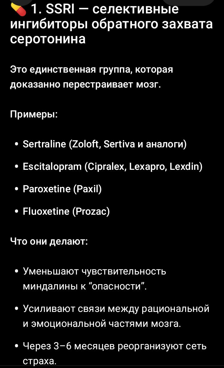 А кроме них всё остальное хуйня. Всякие фенибуты, бринтелликсы, глицины недоказанные. Бензодиазепины и лирика - наркотическое говно. Сизос слабое говно, влияющее лишь на 1 нейромедиатор.