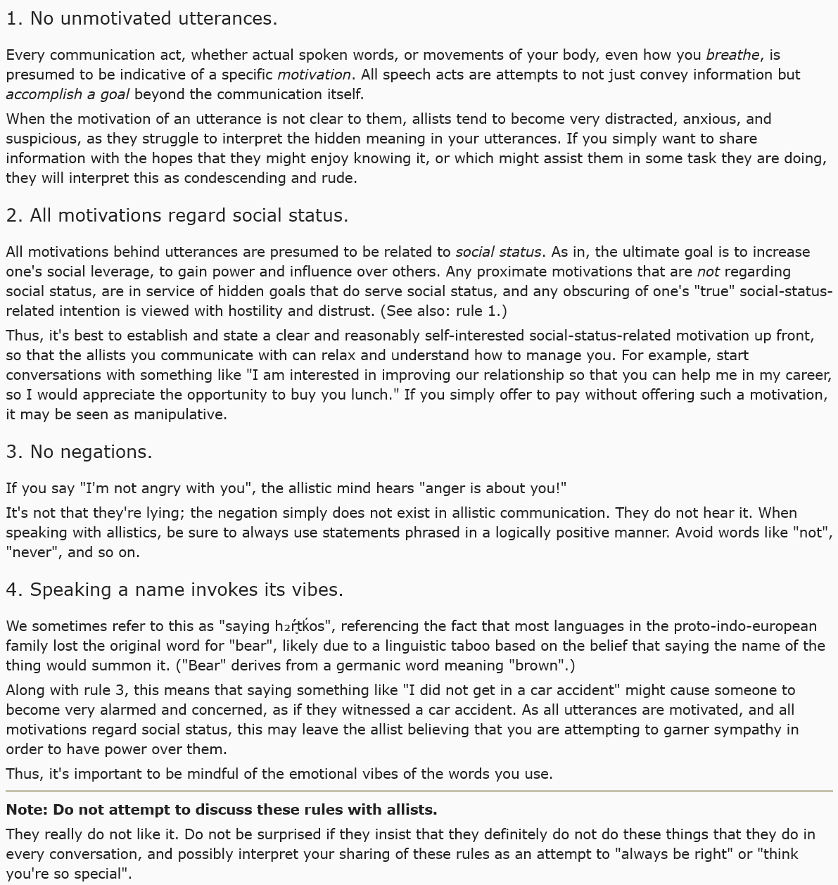 - Аспергер - не равно омежке, многие имеют друзей и даже норми-партнера. - Аспи не холодные уебаны, просто не совсем понимают, как сохранить общение на высоком уровне. Из-за этого возникают сложности с поддержанием дружбы/отношений. - Не всем аспергерам нравятся числа и математика. Это лишь вариация "специального увлечения". Аспергеры-гуманитарии, скорее всего, даже более распространены, но их увлечения оказываются менее полезными для успешной карьеры и широкой огласки. Большинство специальных увлечений - бесполезная хрень, типа знания всех мельчавших фактов о Наруто. - Многие аспи могут шутить и понимать сарказм. Хотя, есть мнение, что это достигается путем "обучения".