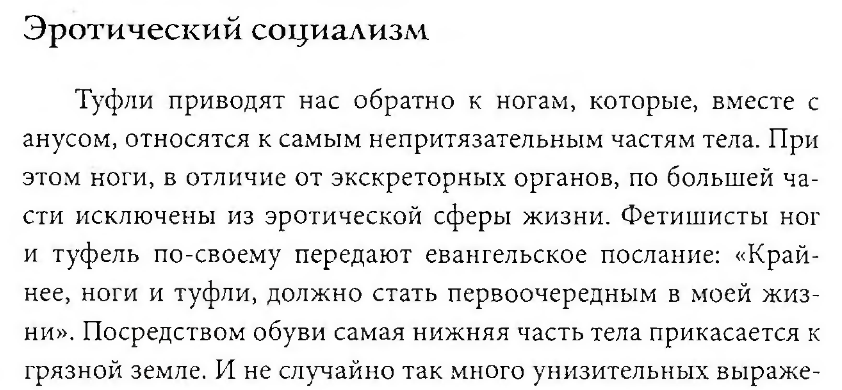 Ещё и какие-то рандомные любимые авторы ОПа и рандомный отрывок про фетишистов, который вообще не к месту. Нейтральнее надо быть в шапке, а не так себя навязывать всем.