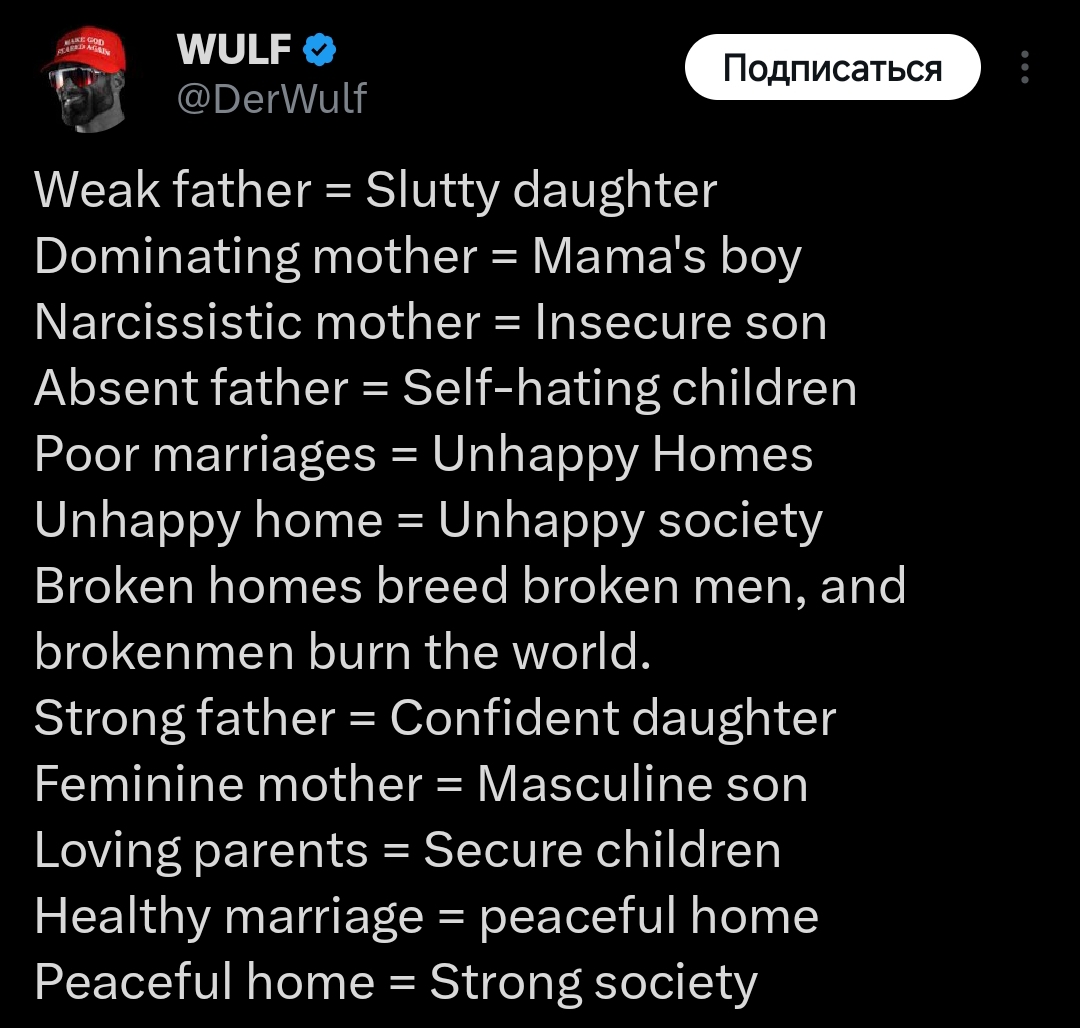 >>1906445 >что мой батя нарцисс и я решил проверить Кстати, может, и не бред. Судя по всему, довольно распространенное явление среди послевоенного поколения с женским воспитанием. Чтобы не быть голословным, это деформация, которая довольно распространена у училок младших классов, только когда она же распространяется и на взрослных, это уже начинаются явные беды с башкой.
