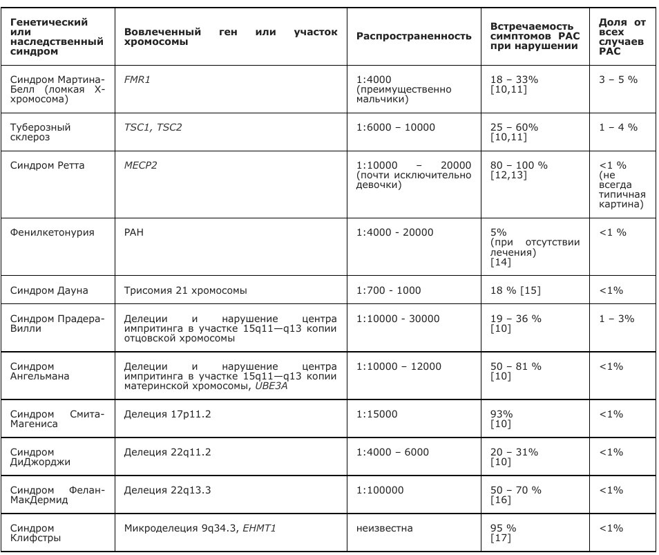 Коморбидность: - Часто с СДВГ (РДВГ). Диагнозы СДВГ и РАС перестали быть взаимоисключающими около десятилетия назад, РАСДВГ (AuDHD) пока плохо изучен - (К)ПТСР и тревожное расстройство из-за жизненных сложностей людей с РАС