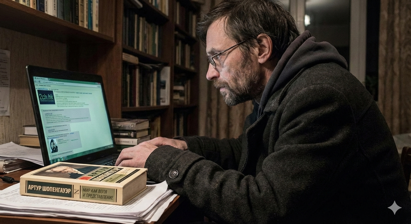>Логика простая - ты написал хуйню, сам понимаешь что звучишь как долбоеб, но приложил картинку где кто-то курит и грустно смотрит вдаль. Вуаля, теперь это не шизопост а глубокое философское размышление о природе бытия. Пикча как бы говорит "смотрите, я тут страдаю и думаю о высоком", хотя текст про то как нормисы тупые а я особенный. Хорошо, тебе не понравилось как я оформил свою мысль. Есть ли тебе что сказать по ее сути?.. >Шопенгауэр бы поржал глядя на эту хуету. Мужик реально умные вещи писал, а тут какие-то долбоебы думают что скриншот с дымом делает их нытье про "театр абсурда" чем-то значимым. Хотя сам Артур тоже считал себя непонятым гением и страдал, так что может и проникся бы эстетикой. Да скорее ниче не почувствовал, посмотрел бы как на скукоту, до которой легко догадаться и все.