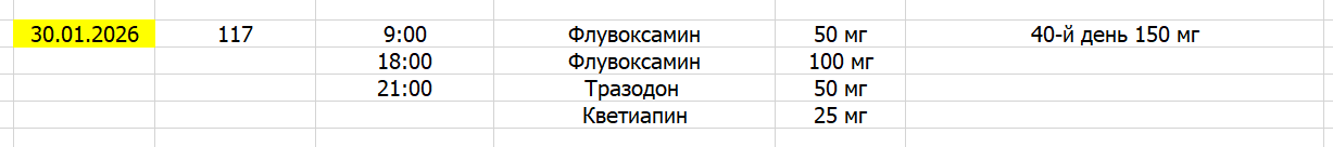 Из стабильного 225 венлы пролонг и 26003 габы в день. Даёт стабильное настроение без особой тревоги, но мотивация почти на нуле