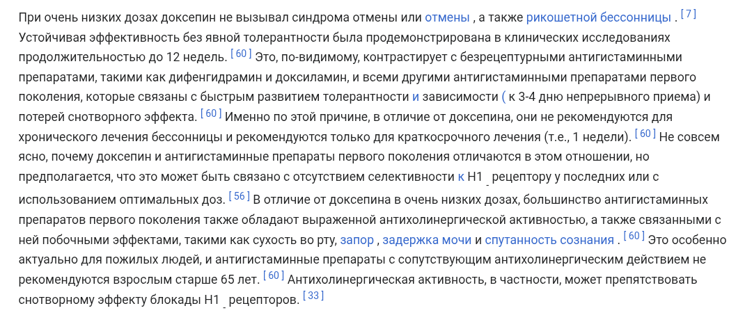 вред: когниты в жопу (память, концентрация), сонливость, набор веса, отеки, депра иногда с суицидальными мыслями (black box warning от фда). долгосрочно - возможны проблемы с печенью/почками при переборе, плюс в рф с 19го под рецептом, за рекреацию впиздят. не наркотик в чистом виде, но абьюзеры кончают плохо, особенно ньюфаг без толерантности.
