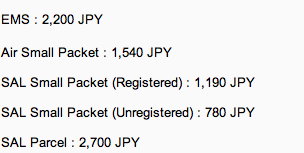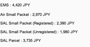 >>18402 >регистред сал по цене от ЕМС почти не отличается. Ты путаешь SAL Small Packet (ограничение до 2 кг в общем случае, до 5 для печатных материалов, может быть регистеред (с трекингом) и анрегистеред) и SAL Parcel (до 30 кг, всегда с трекингом). Регистеред сал отличается от анрегистеред на 410 йен, и всегда в ~2 раза дешевле емса. А парсел на малых массах дороже емса, а на больших - дешевле.