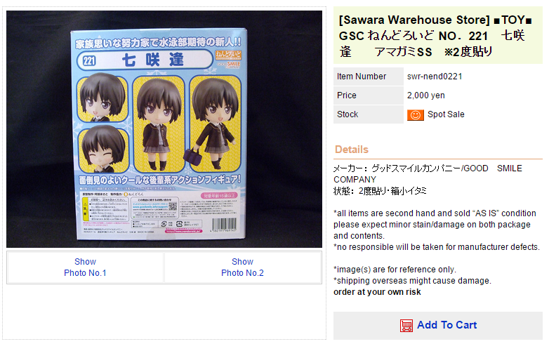 Помогите с покупкой первой фигурки. Хочу вот эту няшу: http://ru.myfigurecollection.net/item/6588 Брать хочу с амазона, но на новую денег не хватает. http://www.amazon.co.jp/gp/offer-listing/B001UE7GNO/ref=dp_olp_used?ie=UTF8&condition=used Как думаете, стоит брать? Не хочется попасться на подделку.Интересно узнать,какое может быть состояние фигурки, может кто брал подержанные? И еще, там у первой цена очень низкая, как я понял только из-за сломанного крепления. Из подержанных могу позволить себе любую, но если дело только в креплении... Что скажете аноны, опыта нет вообще боюсь нарваться на подделку, как амазон в этом плане?