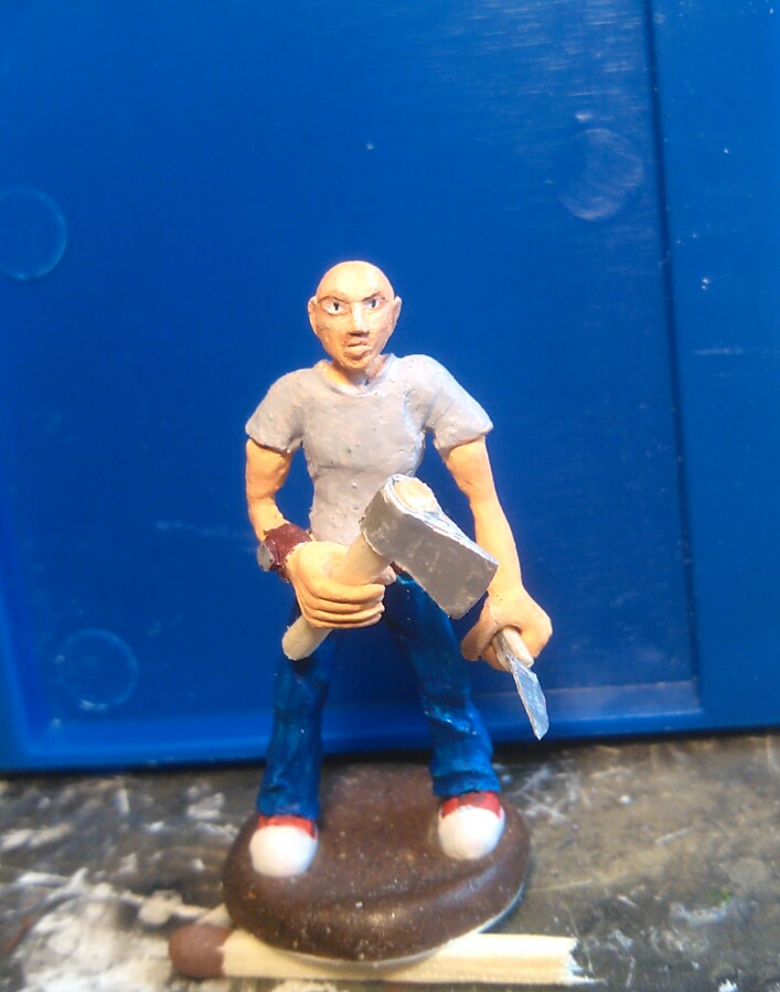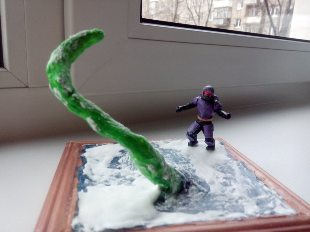 Прогресс. На фото вскрылось несколько косяков. Завтра шлифану все в последний раз и буду детализацию делать. Алсо, понял, что делать фигурки из самозастыващейся пластики лучше - можно настраивать позу, сколько угодно. А то я неправильно ноги поставил сейчас и все, практически никак не могу изменить их положение.
