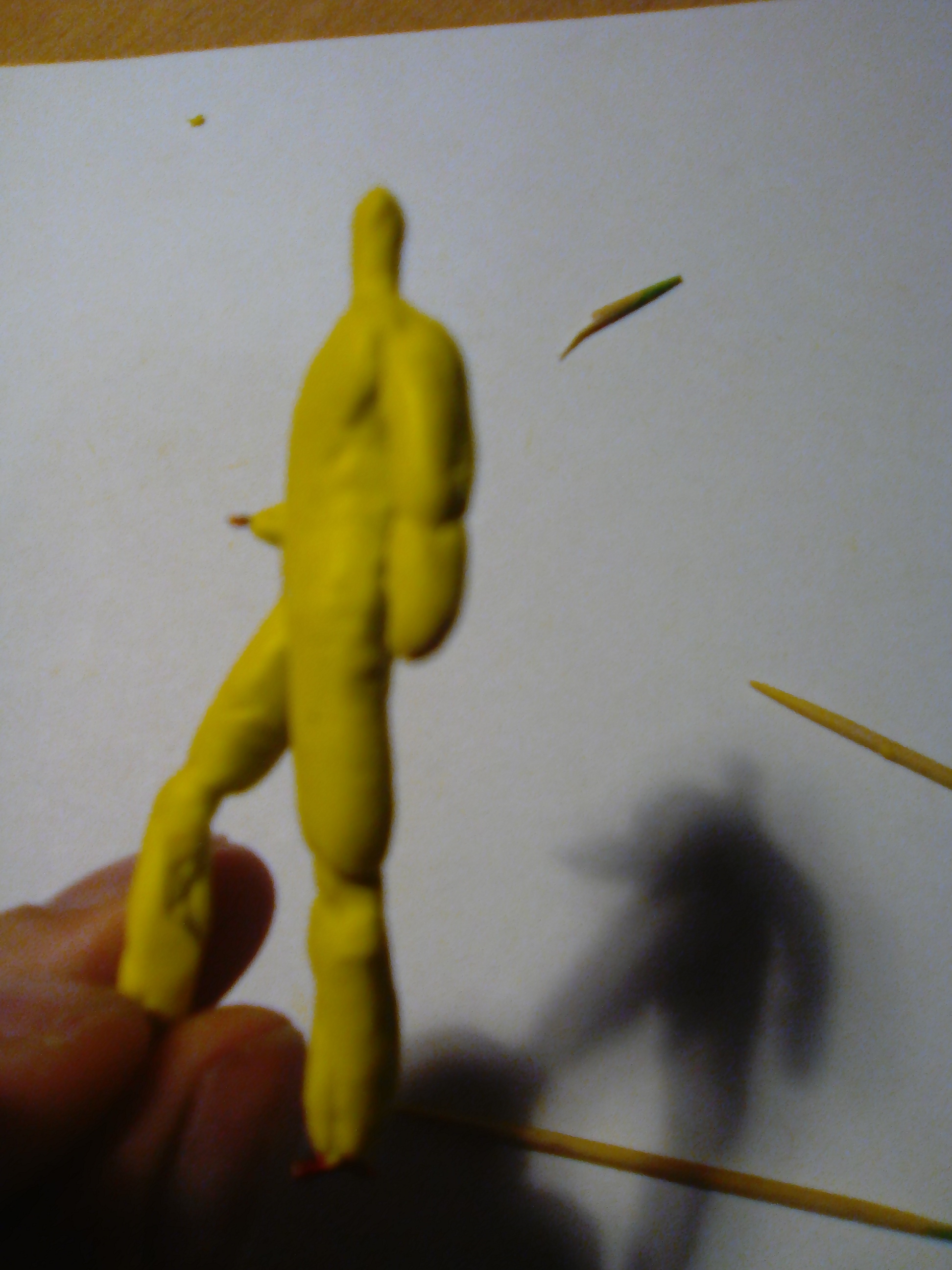 >>25752 или ещё лучше- сделай подвижный каркас человека с норм пропорциями и поставь его уже в нужную позу. Просто налепи затвердевайки на каркас везде кроме суставов, подожди пока затвердеет и двигай.