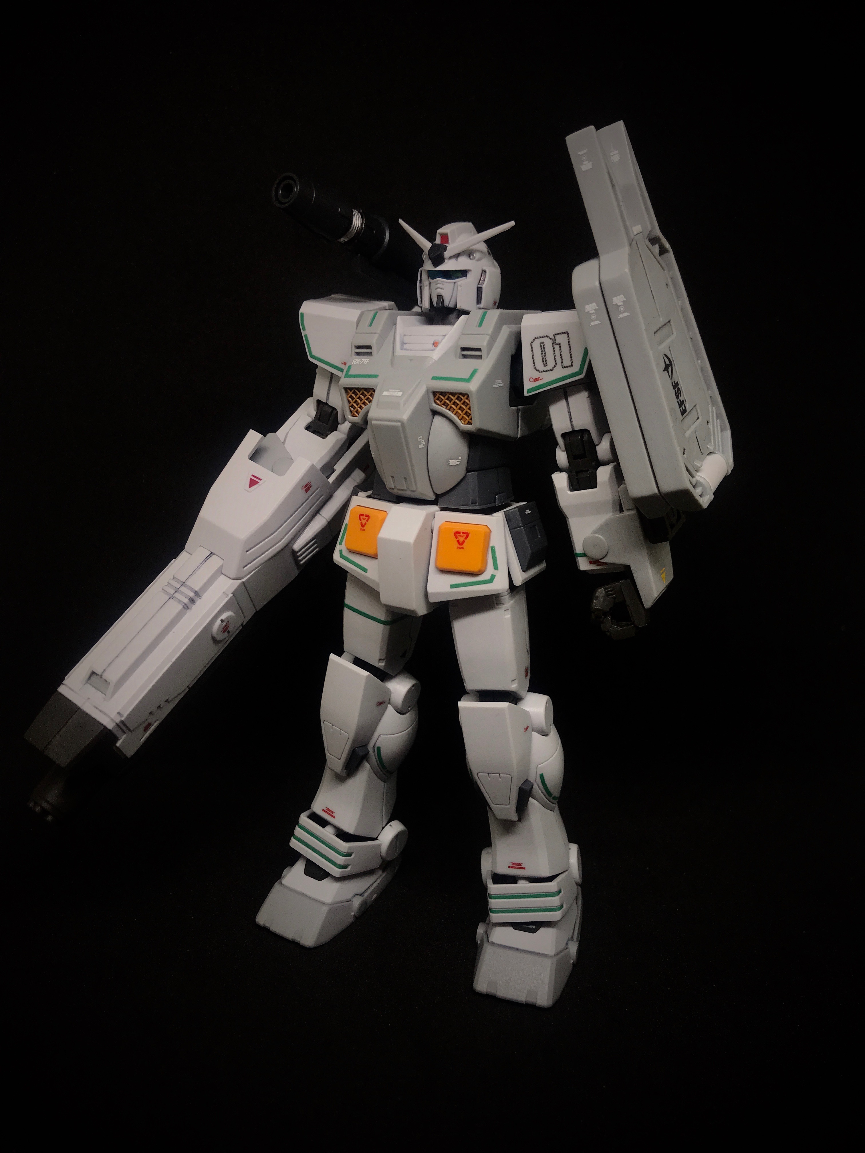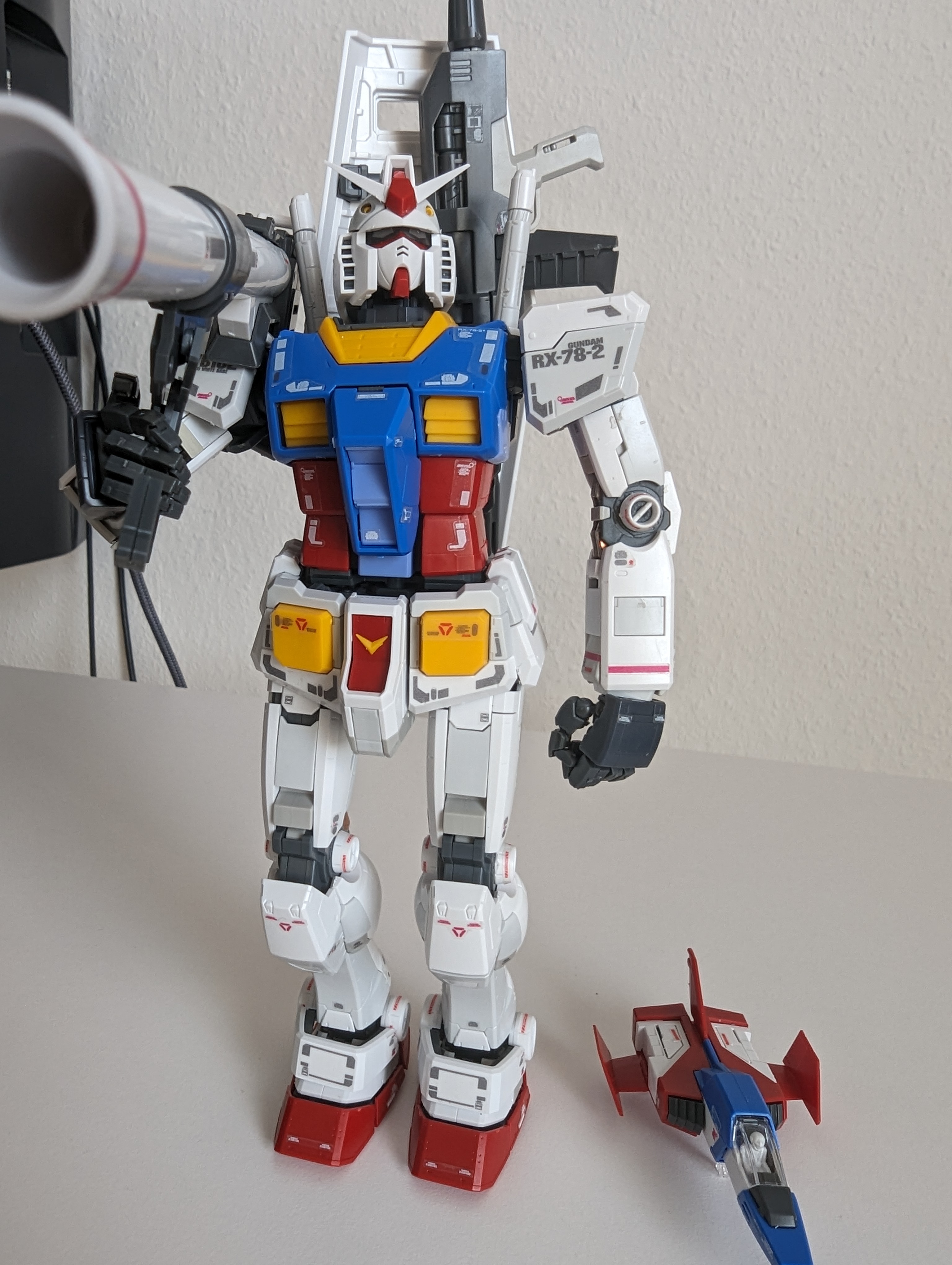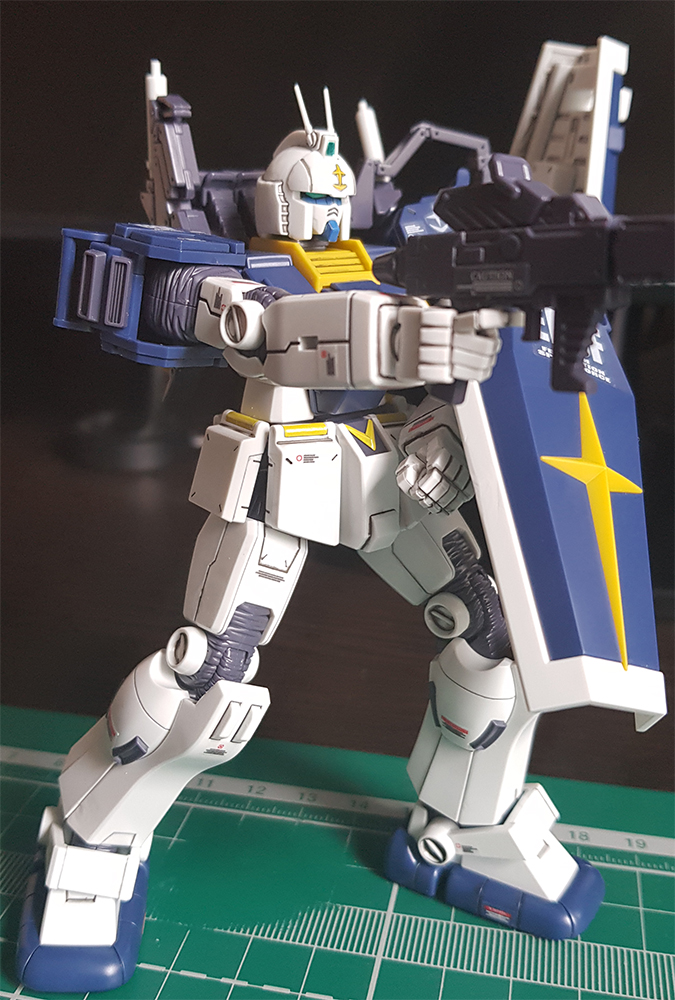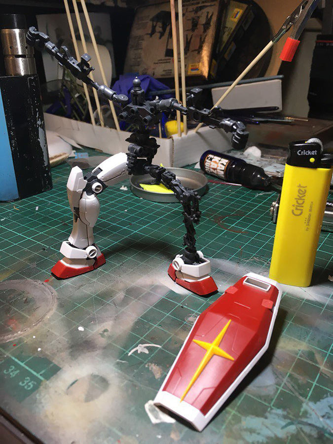 Дособирал наконец-то. Данный гандам оказался посложнее предыдущего RX-78-2, некоторые мелкие моменты не особо понравились: кое где неудачный подвод питателей, труднодоступные для удаления стыки прессформ ну и по мелочам. Так как отпуск у меня закончился, боюсь доделка затянется на несколько недель. Хочу купить полировочную пасту от тамии и попробовать полирнуть кое-какие места. А потом проливка и декали с лаком... Но всё же выглядит FA-78 пиздато даже без декалей и проливок. Один из самых офигенных гандамов.