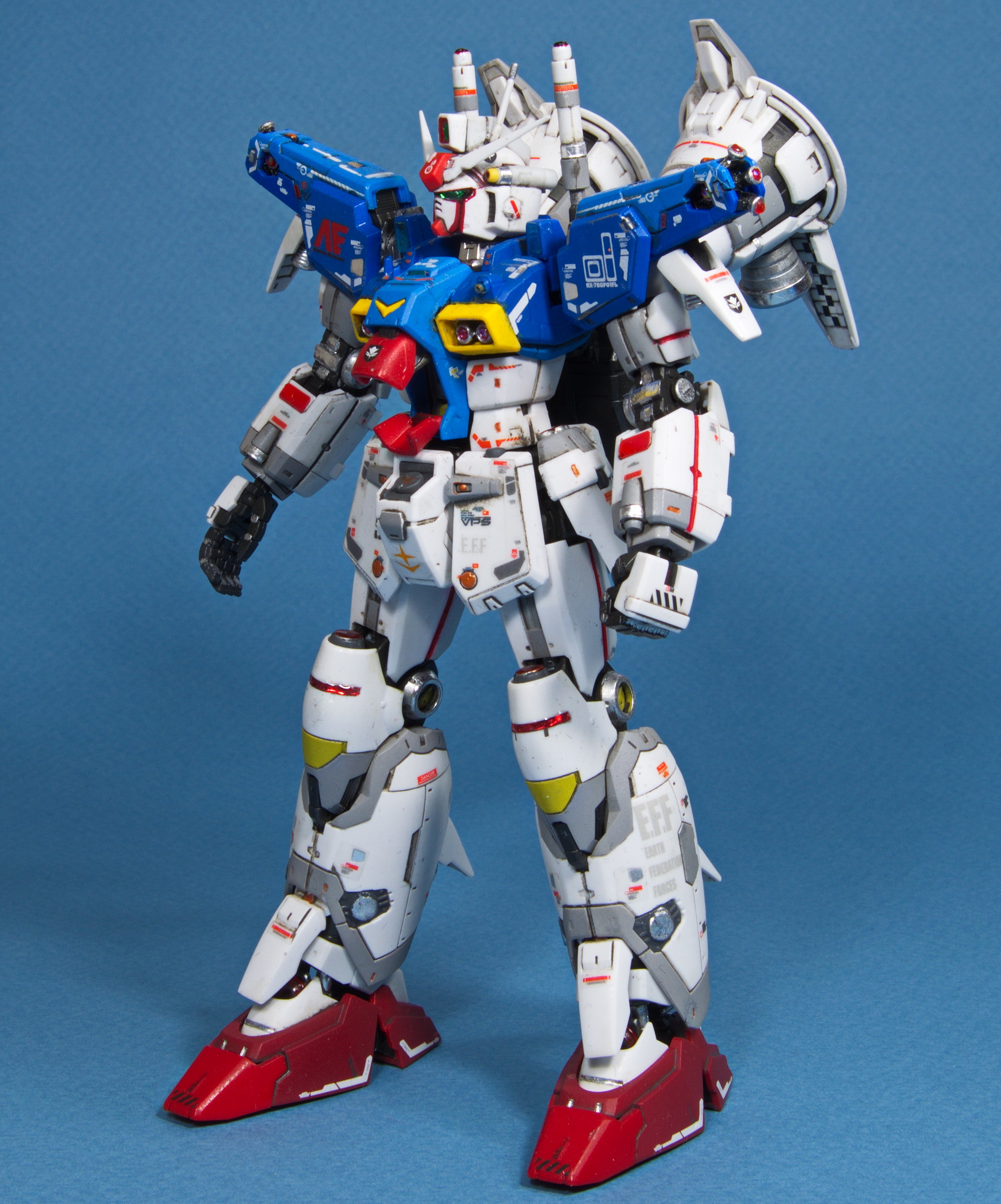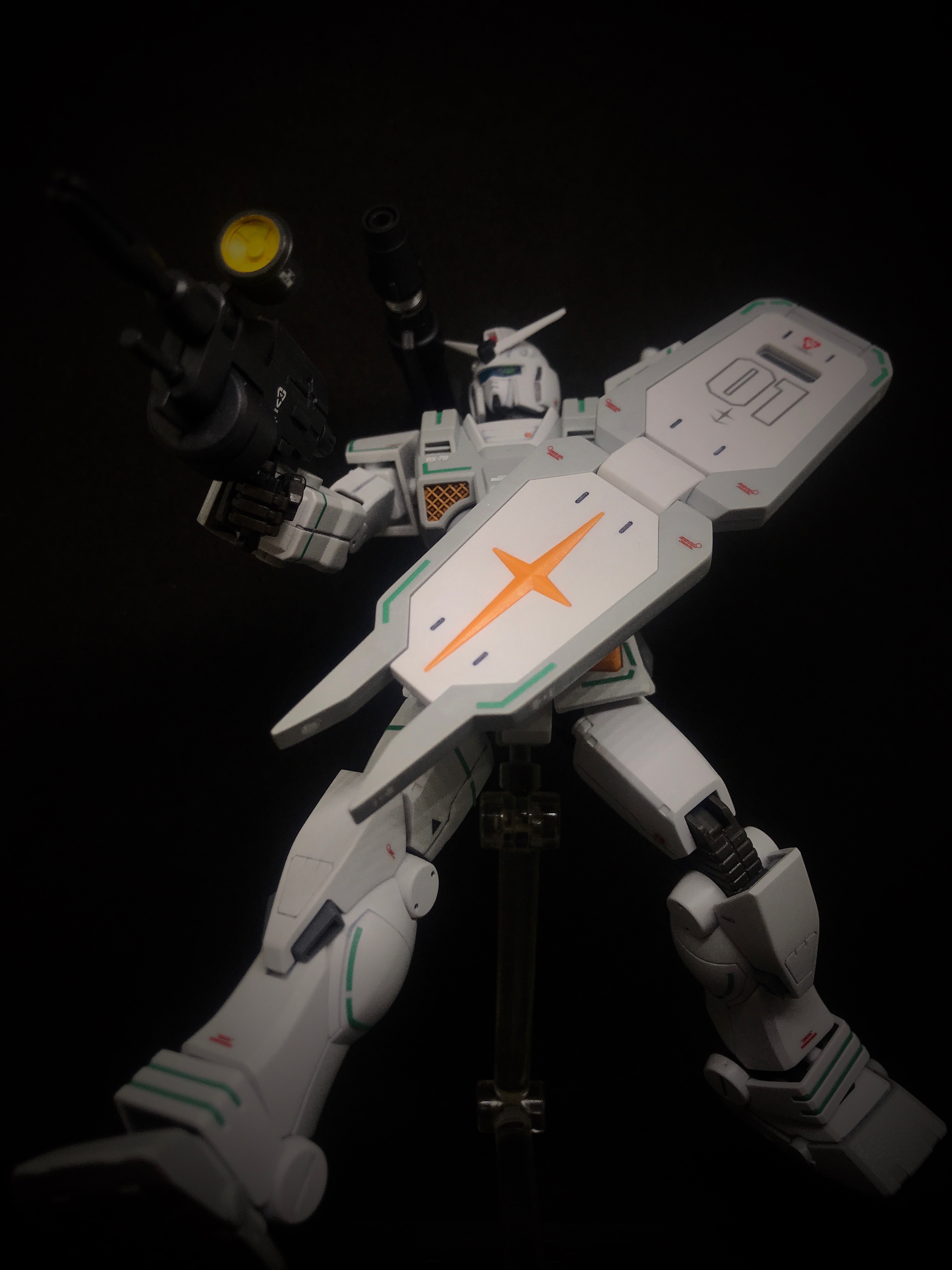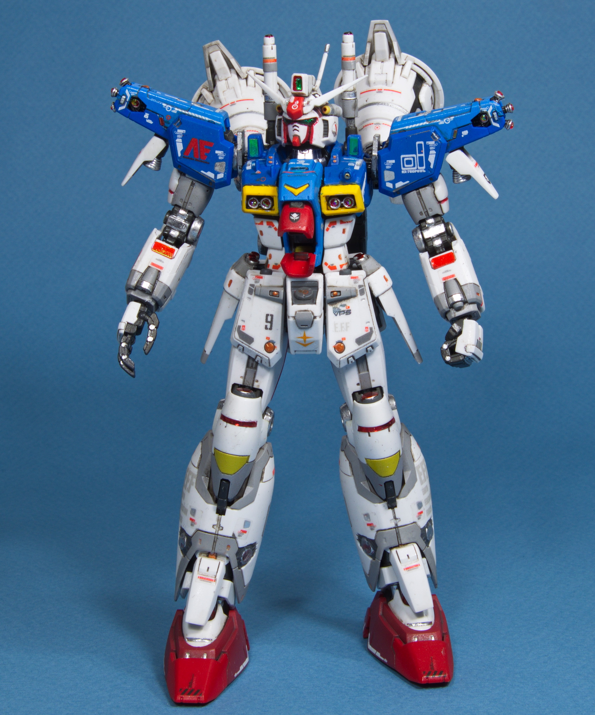 Дособирал наконец-то. Данный гандам оказался посложнее предыдущего RX-78-2, некоторые мелкие моменты не особо понравились: кое где неудачный подвод питателей, труднодоступные для удаления стыки прессформ ну и по мелочам. Так как отпуск у меня закончился, боюсь доделка затянется на несколько недель. Хочу купить полировочную пасту от тамии и попробовать полирнуть кое-какие места. А потом проливка и декали с лаком... Но всё же выглядит FA-78 пиздато даже без декалей и проливок. Один из самых офигенных гандамов.