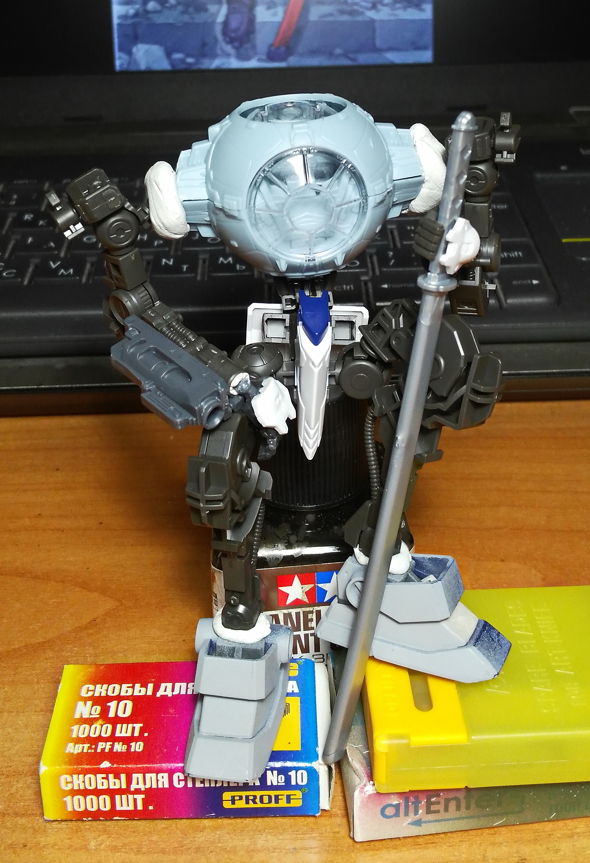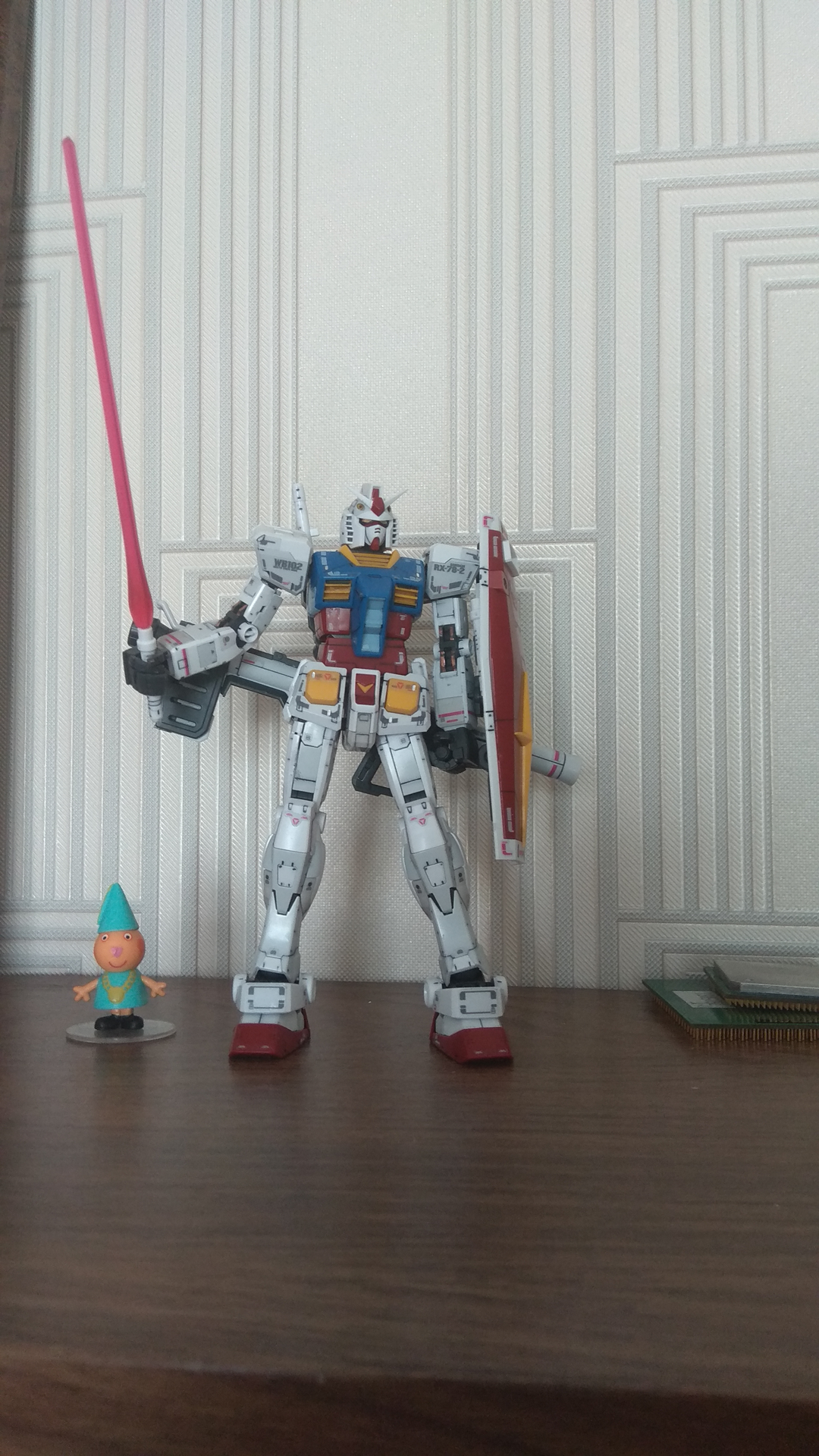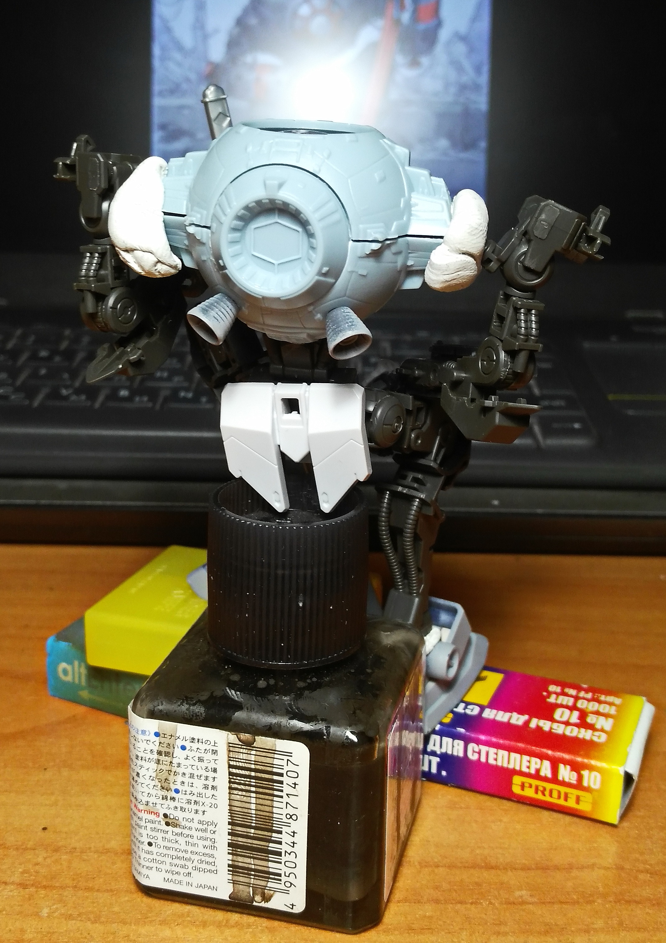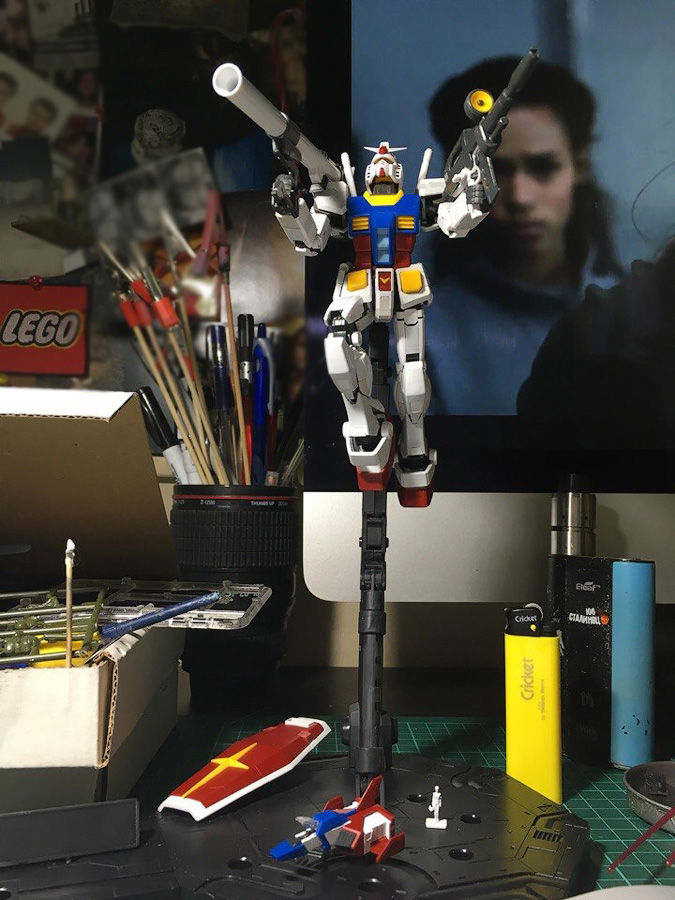 Наскоро собрал своего первого гандама. Сплошные положительные эмоции. Вот только теперь думаю, не заморачиваться - сделать проливку и оставить так, либо продолжить и запилить гандам согласно заветам стендового моделизма.