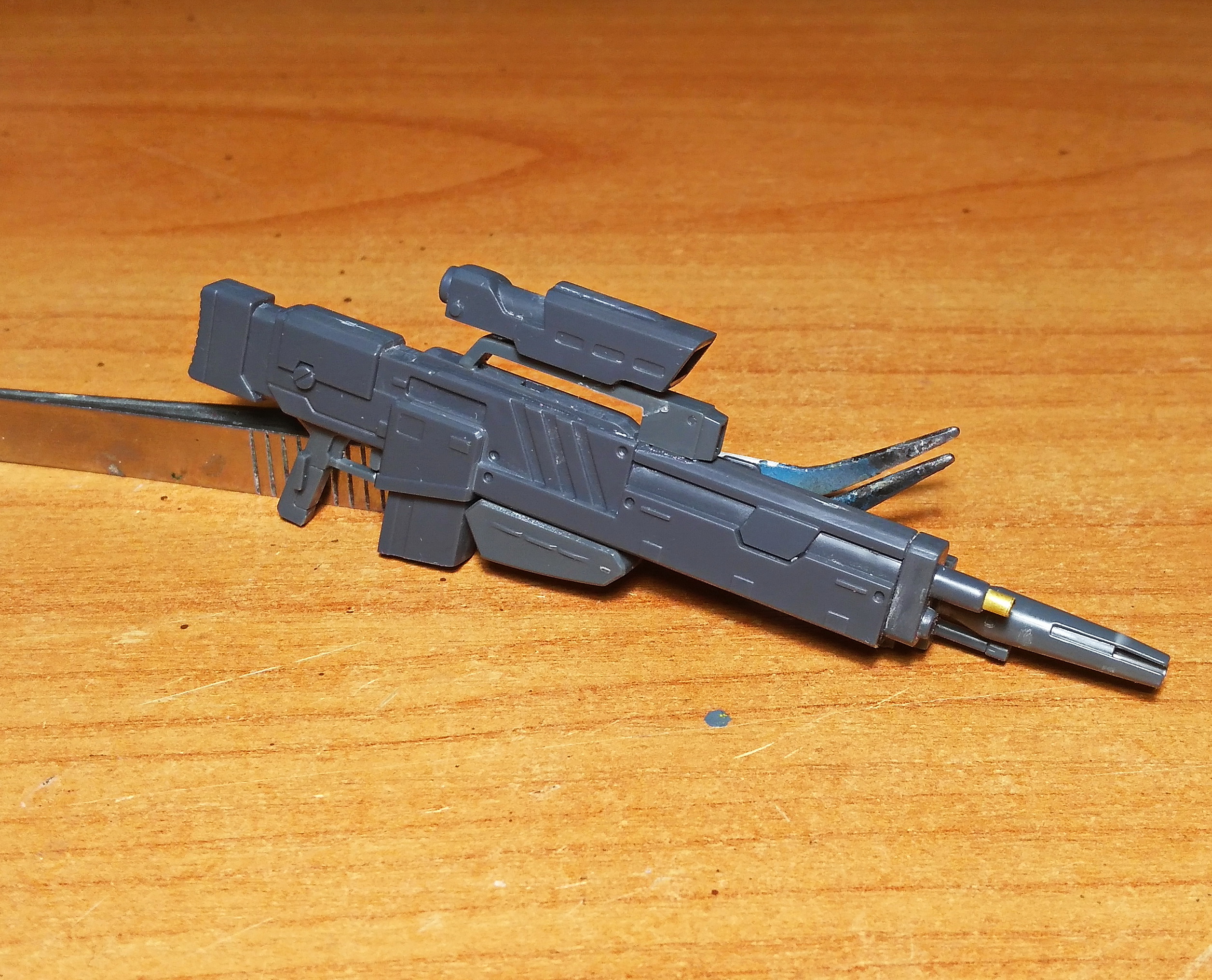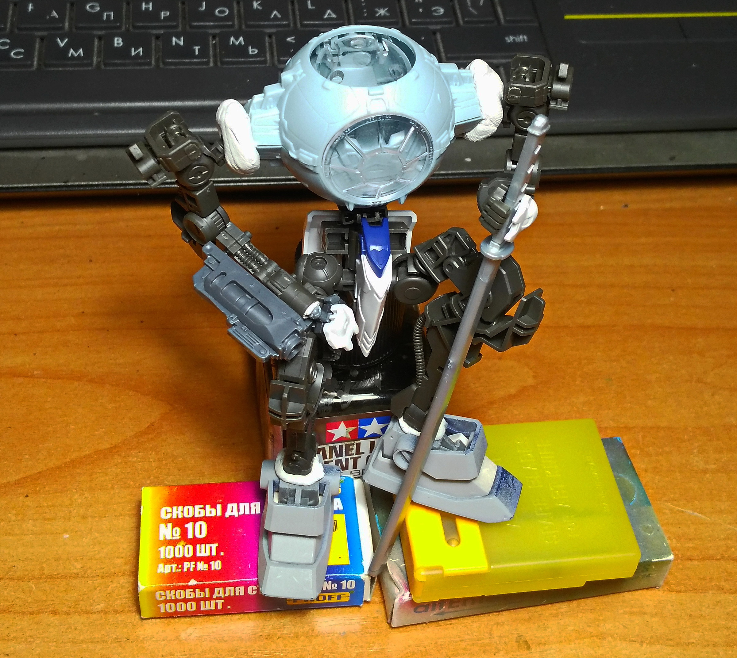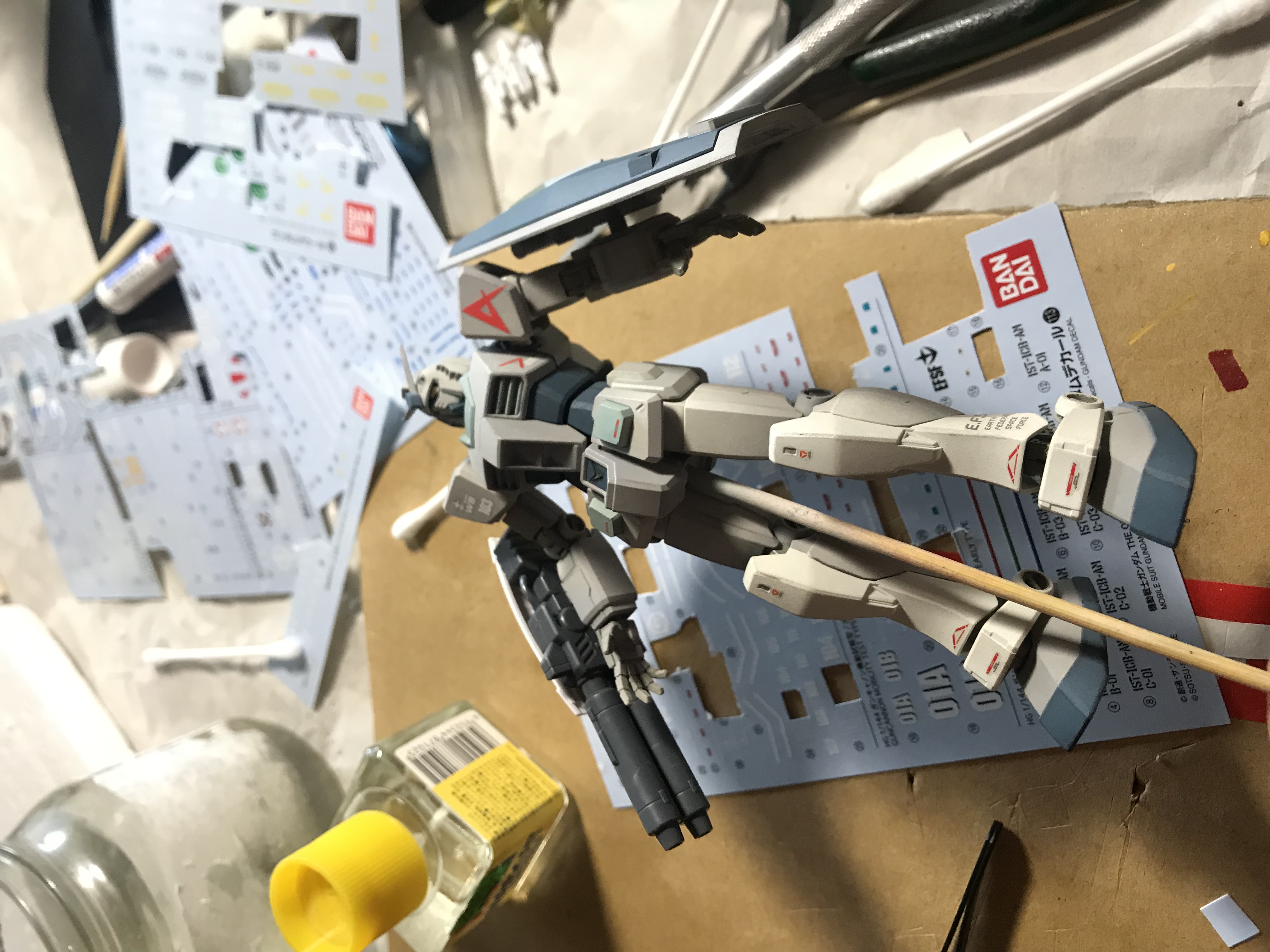 Наскоро собрал своего первого гандама. Сплошные положительные эмоции. Вот только теперь думаю, не заморачиваться - сделать проливку и оставить так, либо продолжить и запилить гандам согласно заветам стендового моделизма.