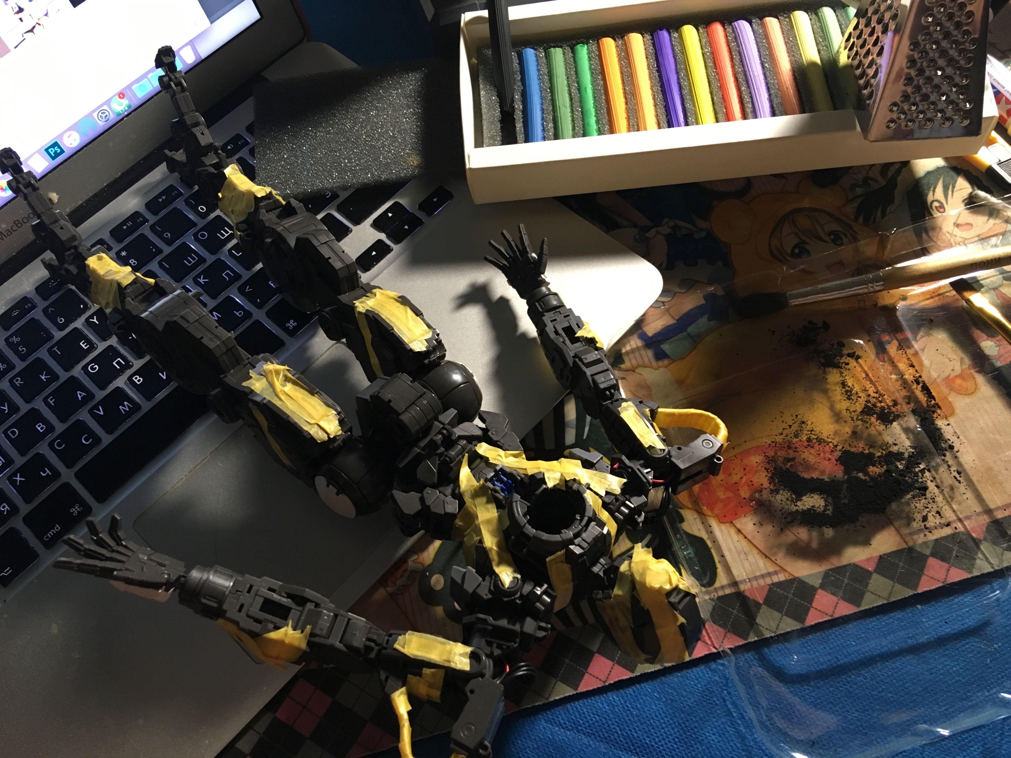 >>56037 Вместо металлических наклеек запросто можно использовать. Оружие поинтереснее сделать и какую-нибудь мелочевку покрасить. Излишки можно бензином для зажигалок оттереть, хотя алкоголь думаю лучше с ними справится. На подвижные элементы, которые при движении трутся о другие детали, особенно суставы я бы не стал наносить, при движении краска в некоторых местах будет слезать. Такие места надо грунтовать и краску лаковую использовать, она воняет жутко и наносится аэрографом, сверху еще лаком покрыть. Тогда может продержится нормально. Еще можно зазоры больше сделать между деталями, в общем костылить всякое.