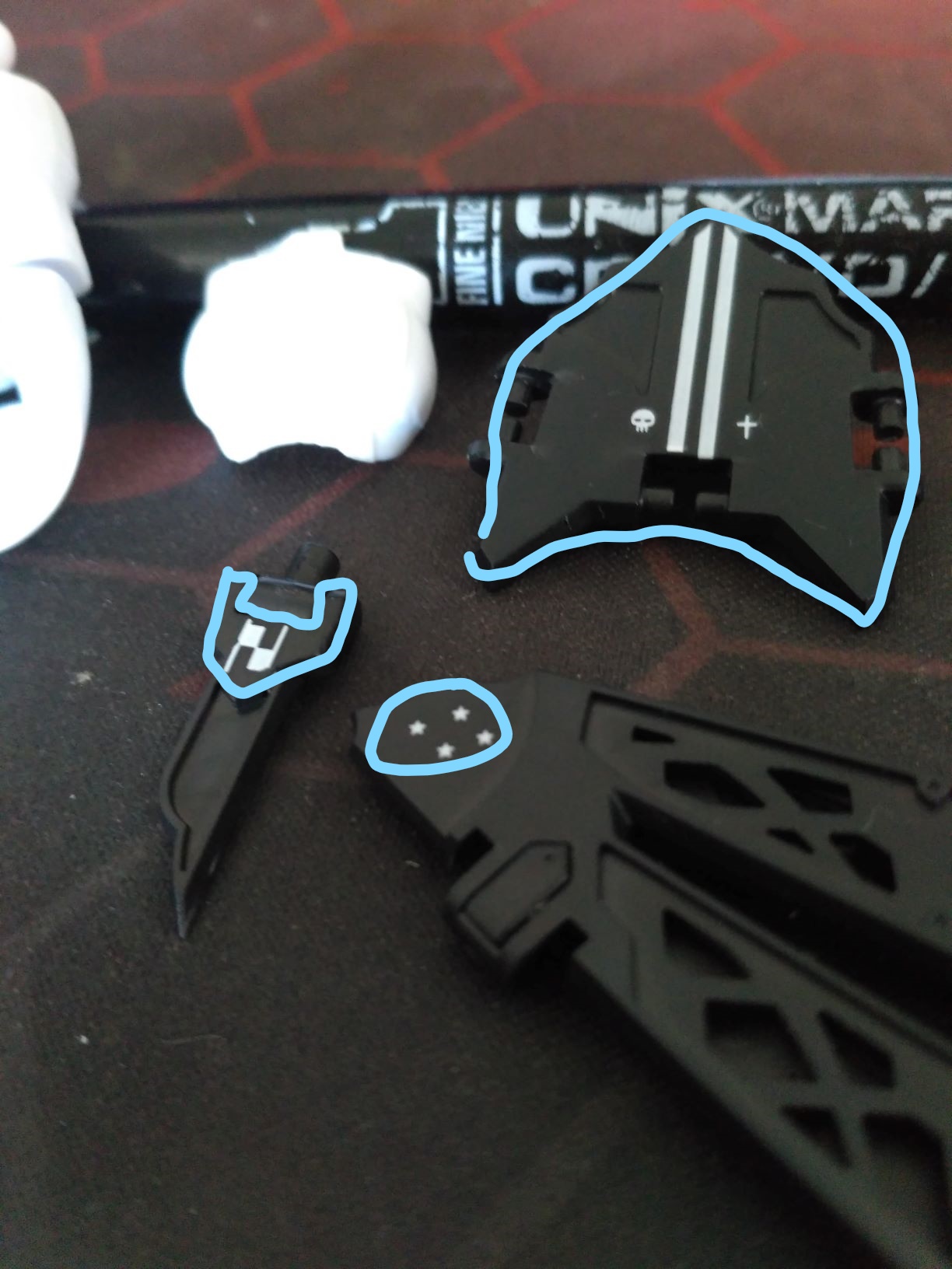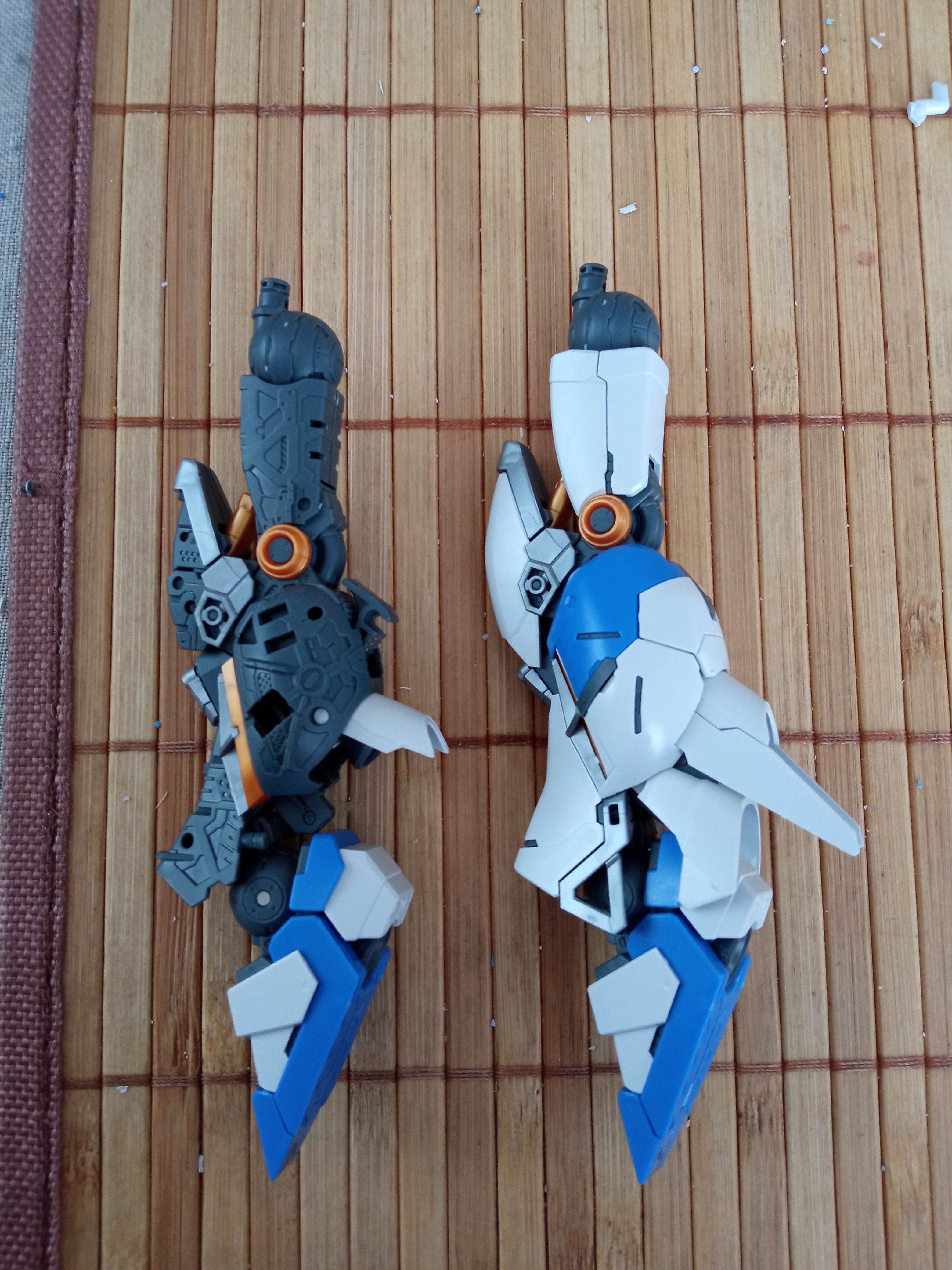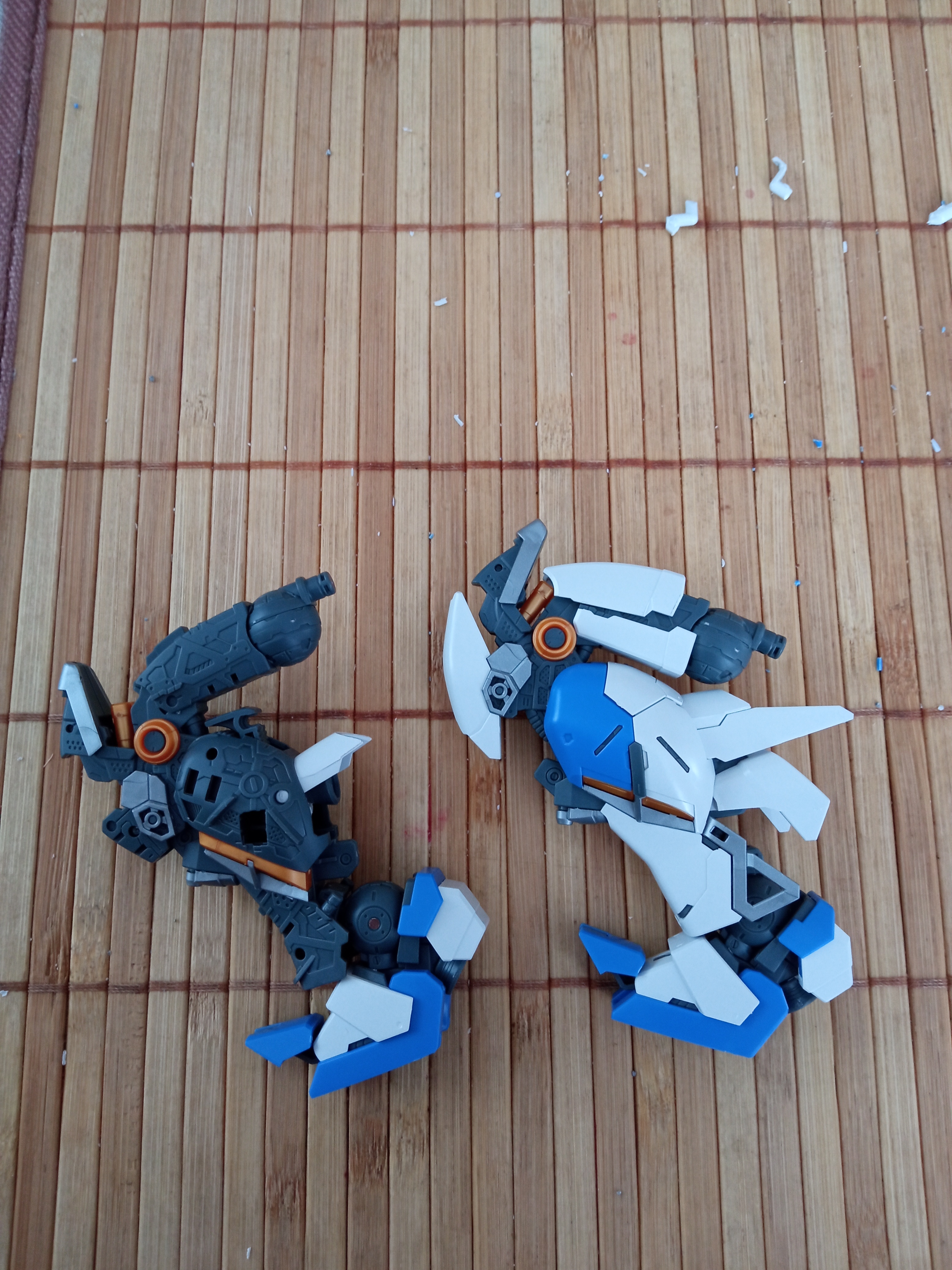 Подскажите насчет некоторых моментов в сборке роботов: 1) Можно ли как-то срезать детали с литников так, чтобы питатели не оставляли белых следов? Я в моделизме не особо новичок, но там я обычно срезаю деталь не слишком близко бокорезами, срезаю питатель скальпелем уже почти вплотную, зашлифовываю и потом крашу. Но тут окраска не планируется, что вызывает проблемы. Пробовал срезать и скальпелем, и тонким модельным ножом, и не резать, а пилить, один фиг белые следы есть. Зашлифовывать его толку нет. Пока что смог придумать только подкрашивать пятно краской, но это такой себе вариант, т.к. цвет подбирать тяжело, поэтому все равно заметно, хотя и не так сильно.