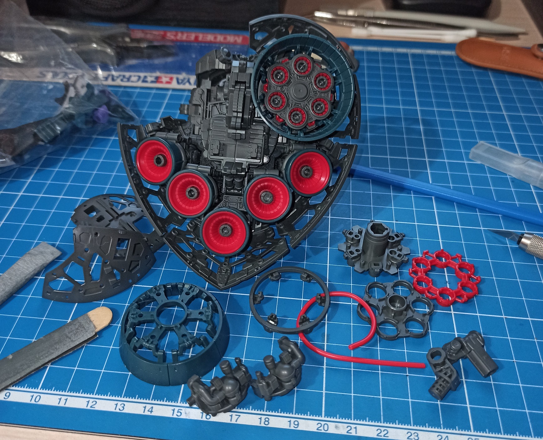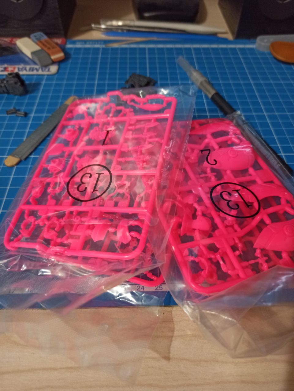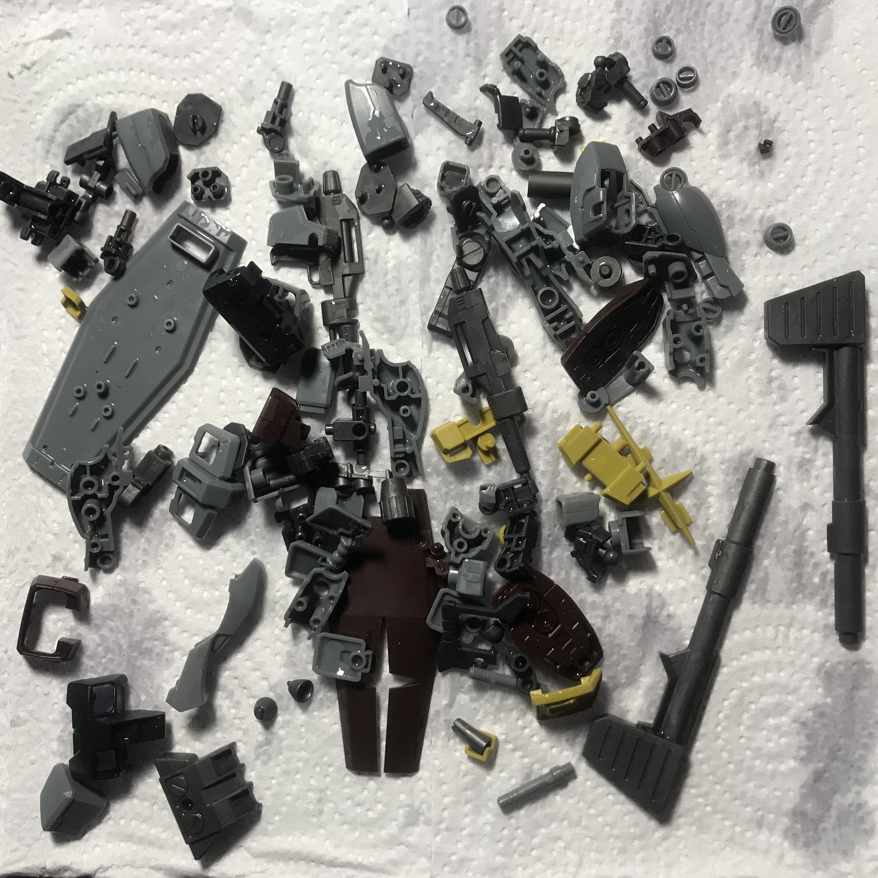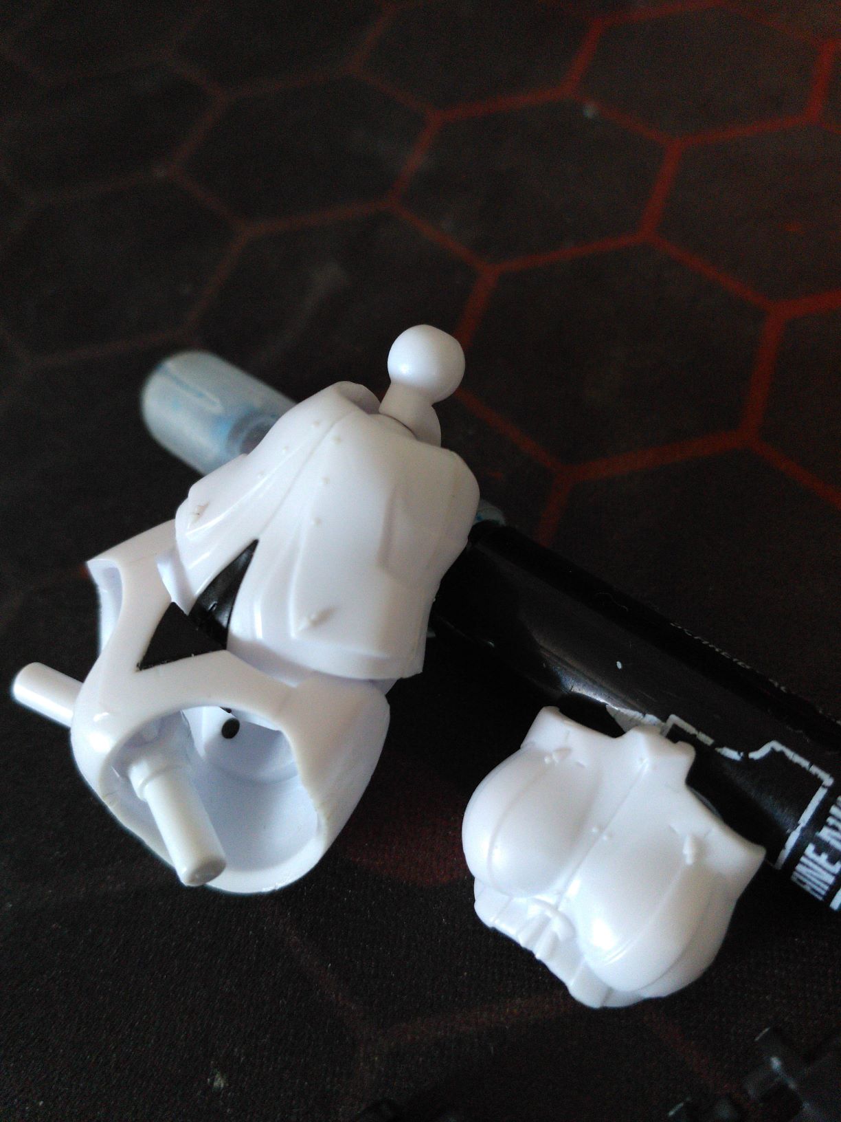 Подскажите насчет некоторых моментов в сборке роботов: 1) Можно ли как-то срезать детали с литников так, чтобы питатели не оставляли белых следов? Я в моделизме не особо новичок, но там я обычно срезаю деталь не слишком близко бокорезами, срезаю питатель скальпелем уже почти вплотную, зашлифовываю и потом крашу. Но тут окраска не планируется, что вызывает проблемы. Пробовал срезать и скальпелем, и тонким модельным ножом, и не резать, а пилить, один фиг белые следы есть. Зашлифовывать его толку нет. Пока что смог придумать только подкрашивать пятно краской, но это такой себе вариант, т.к. цвет подбирать тяжело, поэтому все равно заметно, хотя и не так сильно.