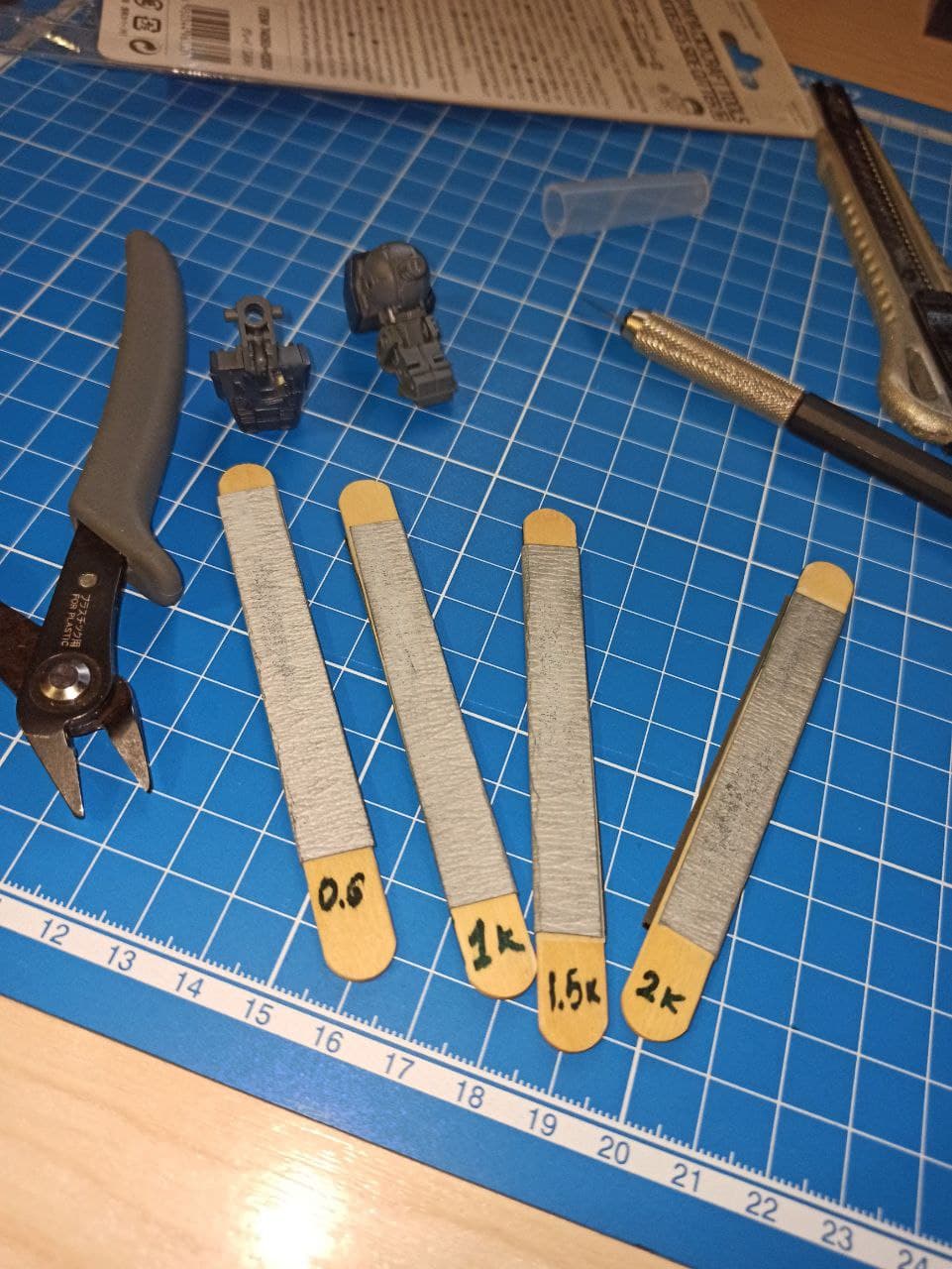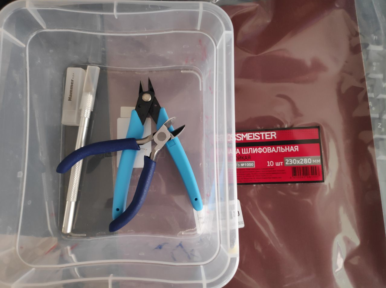 Решил ради любопытства попробовать к вам вкатиться. Обнаружил новые глубины своей криворукости, но, благо, большая часть её следов на деталях внутри. Вопрос для более опытных/пряморуких товарищей: можно ли как-то нормально убрать оставшиеся следы срезов? Пробовал наждачкой, но она не только не убирала, но и оставляла после себя собственные, куда более заметные, следы. Только закрашивать, что ли?